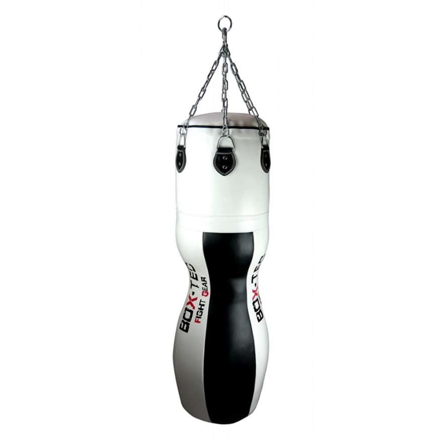 Ideal geeignet für das professionelle Training zu Hause oder im Studio. Der Boxsack ist das perfekte Trainingsgerät für ein effektives Fitness-, Reaktions- sowie Kraft-Konditions-Training. Das Trainingsspektrum reicht vom Ausdauertraining bis hin zum gezielten Training spezieller Schlag- sowie Tritt-Techniken. Der Sandsack besteht aus extrem strapazierfähigem Kunstleder und ist mit kleingeschnittenem Textil gefüllt, welches eine perfekte Balance zwischen Härte und Stabilität gewährleistet. Hochwertig verarbeitete Nähte mit reißfester Doppelnaht garantieren eine lange Lebensdauer. Inkl. Sechspunkt-Kette mit Drehwirbel (ca. 45cm).