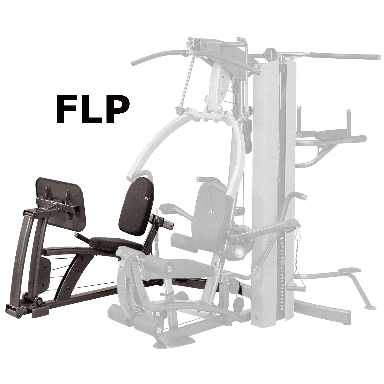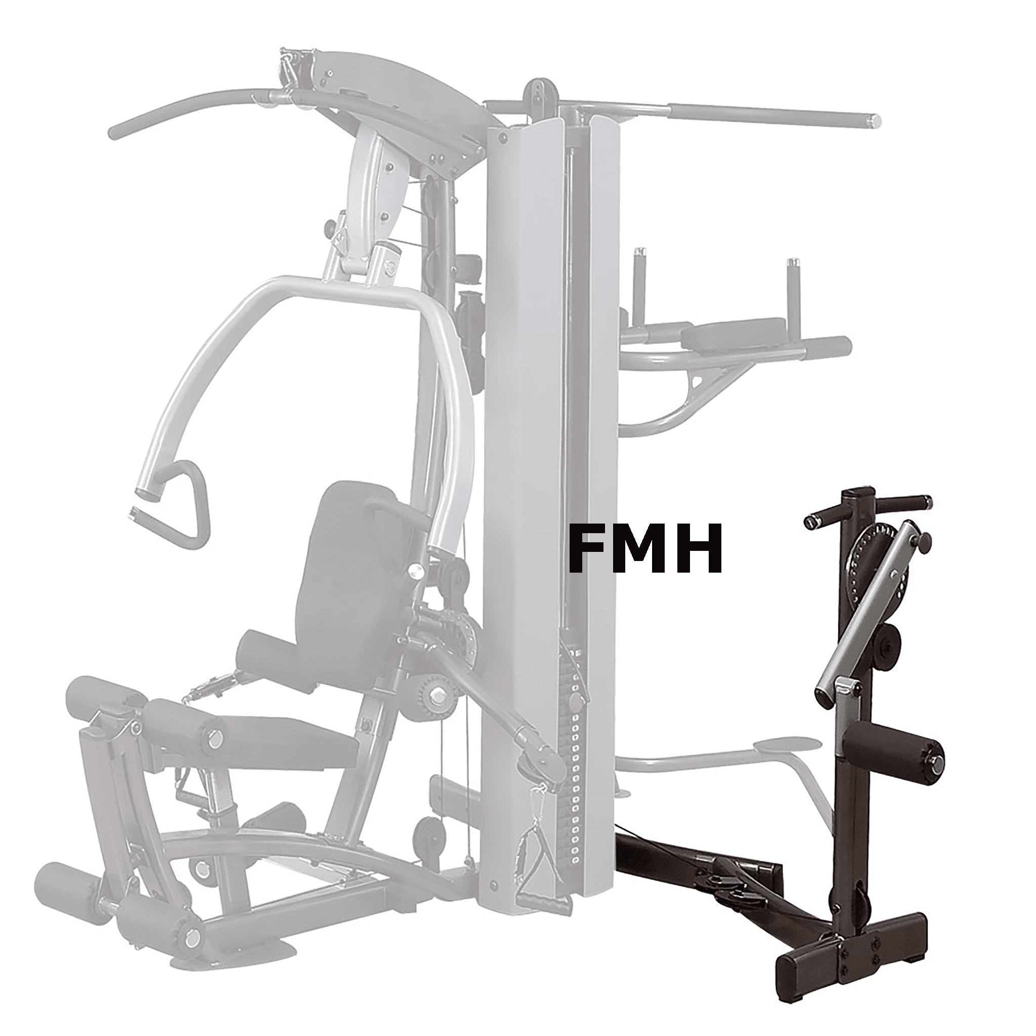Es können auf beiden Seiten sowie auf der Rückseite des Ganzkörpertrainers optional Erweiterungen angebaut werden. Insgesamt kann pro Seite eine Erweiterung montiert werden. Bei der Montage auf der linken Seite beträgt das Übersetzungsverhältnis 1:2. Auf der gegenüberliegenden Seite wiederum 2:1, wodurch Sie dort die Beinpressen-Erweiterung anbietet.