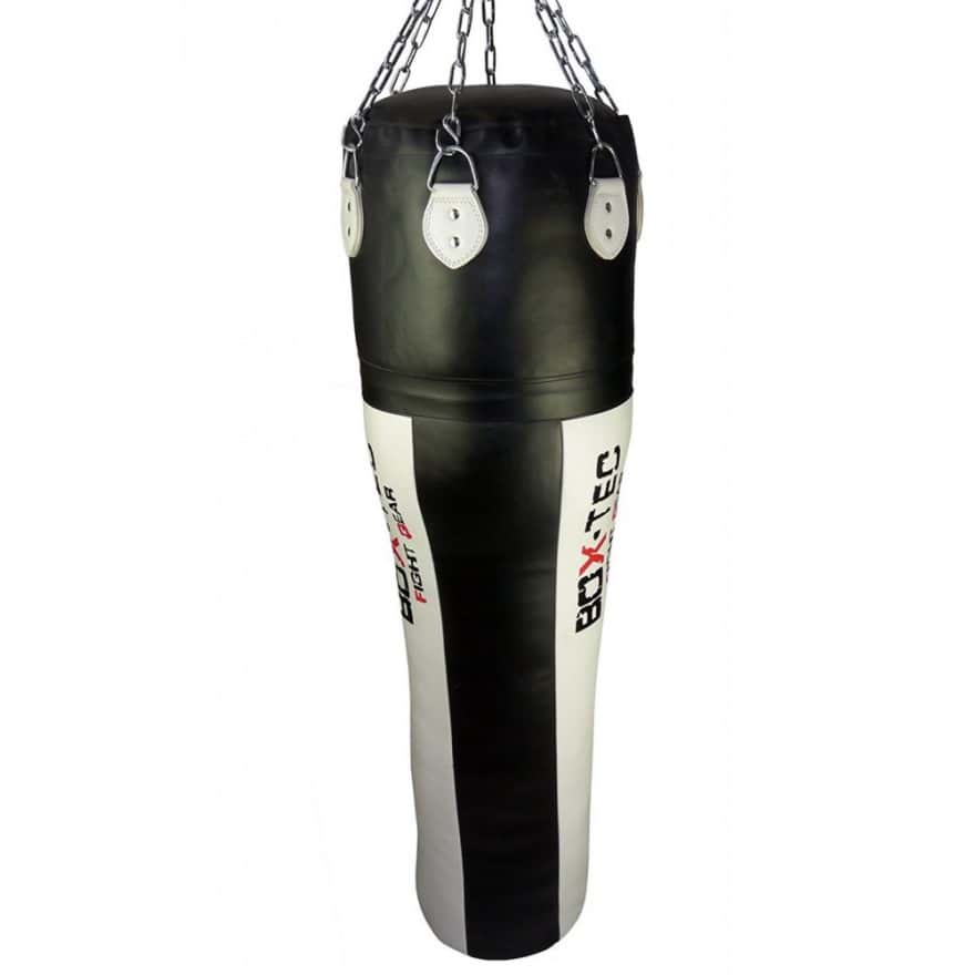 Ideal geeignet für das professionelle Training zu Hause oder im Studio. Der Boxsack ist das perfekte Trainingsgerät für ein effektives Fitness-, Reaktions- sowie Kraft-Konditions-Training. Das Trainingsspektrum reicht vom Ausdauertraining bis hin zum gezielten Training spezieller Schlag- sowie Tritt-Techniken. Der Sandsack besteht aus extrem strapazierfähigem Kunstleder und ist mit kleingeschnittenem Textil gefüllt, welches eine perfekte Balance zwischen Härte und Stabilität gewährleistet. Hochwertig verarbeitete Nähte mit reißfester Doppelnaht garantieren eine lange Lebensdauer. Inkl. Sechspunkt-Kette mit Drehwirbel (ca. 45cm).