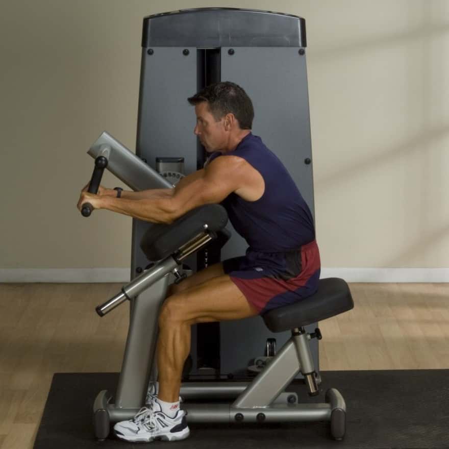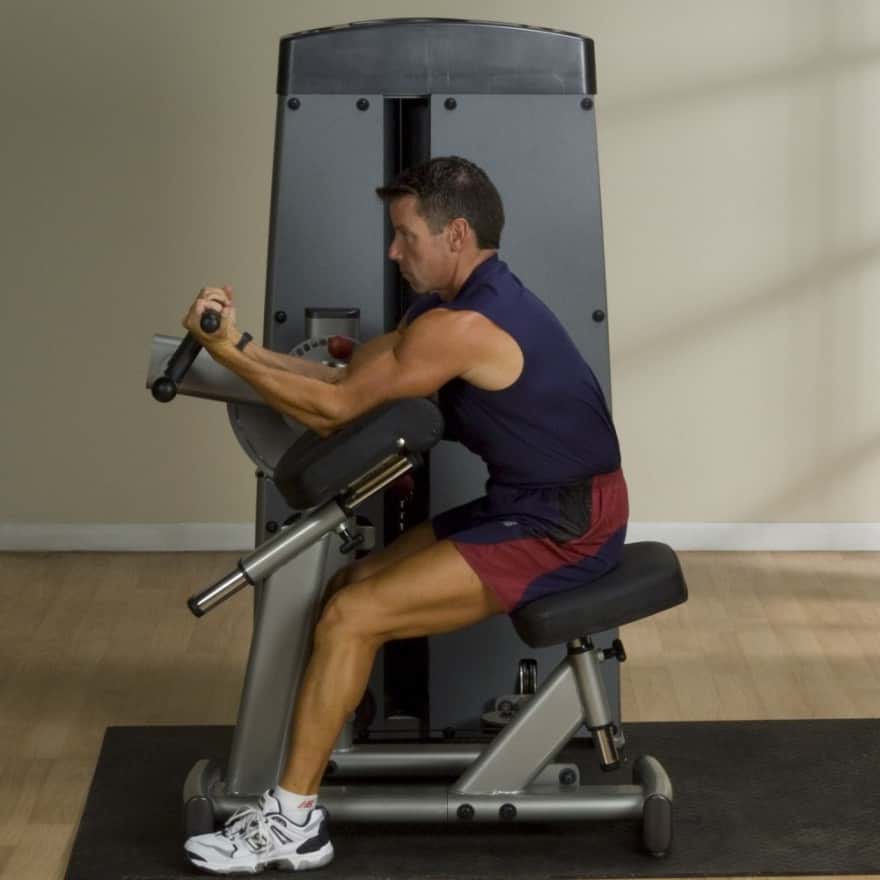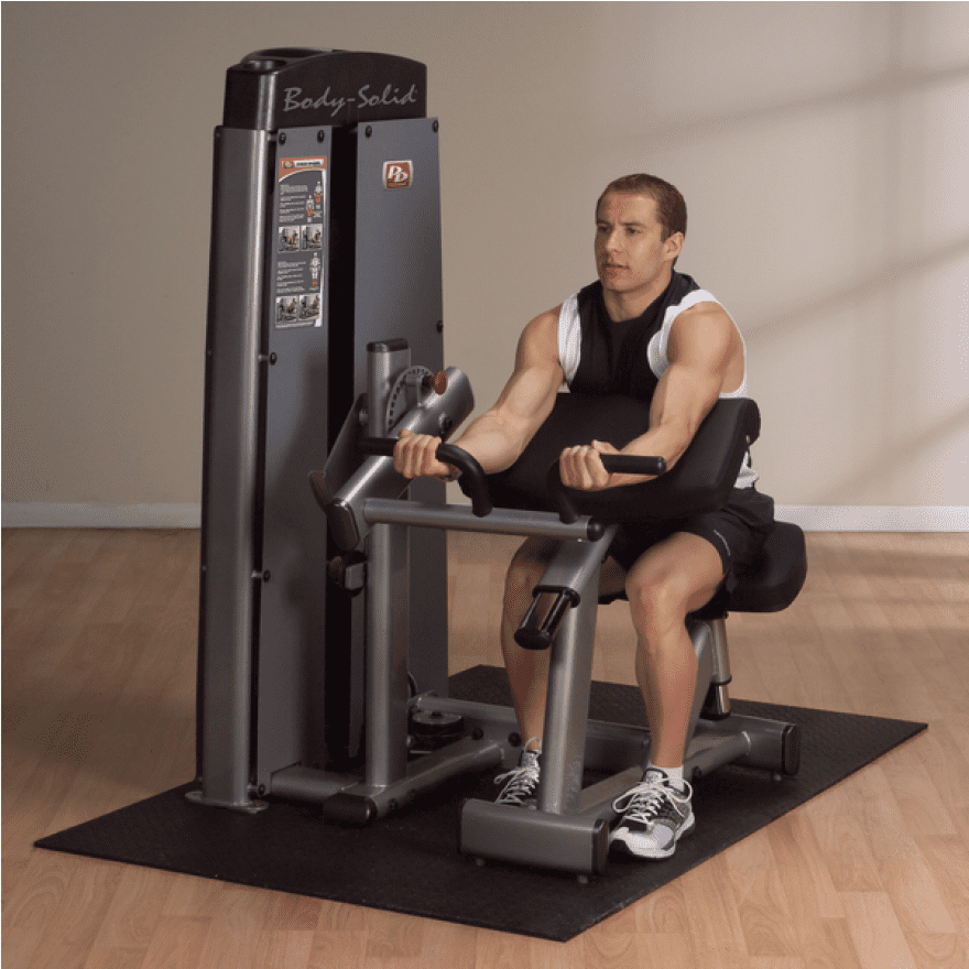 Der Oberarm besteht aus zwei primären Muskelpartien - dem Bizeps und dem Trizeps. Um eine starke und massive Oberarmmuskulatur aufbauen zu können, ist es wichtig, beide Muskelgruppen gleichermaßen kontinuierlich und korrekt zu trainieren. Die Pro-Dual Bizeps/Trizeps-Maschine von Body-Solid ermöglicht einen nahtlosen Wechsel von Bizeps- zu Trizepsübungen. Dabei verfügt die Maschine über 360° schwenkbare Haltegriffe mit 3 Griffpositionen sowie über mehrere individuell einstellbare Startpositionen, um den Trainingskomfort zu maximieren. Das mehrfach verstellbare Armpolster ist zudem so konzipiert worden, dass die Ellenbogen auf die Rotationsachse des Hebearms ausgerichtet sind, um unerwünschte Schulterbewegungen zu vermeiden und somit eine deutlich erhöhte Muskelkontraktion zu erhalten. Der 5-fach verstellbare Sitz mit Gasdruckfeder und Rückenlehne bietet zudem jedem Trainierenden eine bequeme, stabile Plattform, um Bewegungen korrekt zu isolieren.