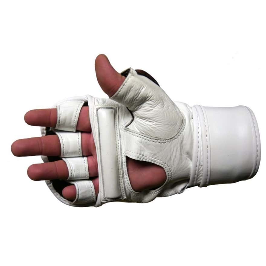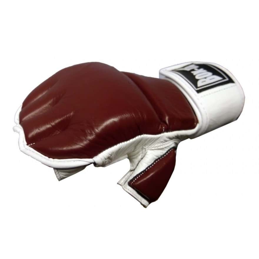 Perfekt für das professionelle Boxsack- sowie Kontakttraining. Die 6cm breite Handgelenksbandage mit Doppel-Klettverschluss stabilisiert und unterstützt das Handgelenk optimal und vermindert so das Verletzungsrisiko. Dank des Stegs auf der Innenseite des Handschuhs wird ein effektives Training der Schlaghärte ermöglicht. Offene Innenseite sowie offene Finger gewährleisten eine perfekte Luftzirkulation. Reißfeste Doppelnähte sorgen für eine lange Lebensdauer. In 4 Größen erhältlich.