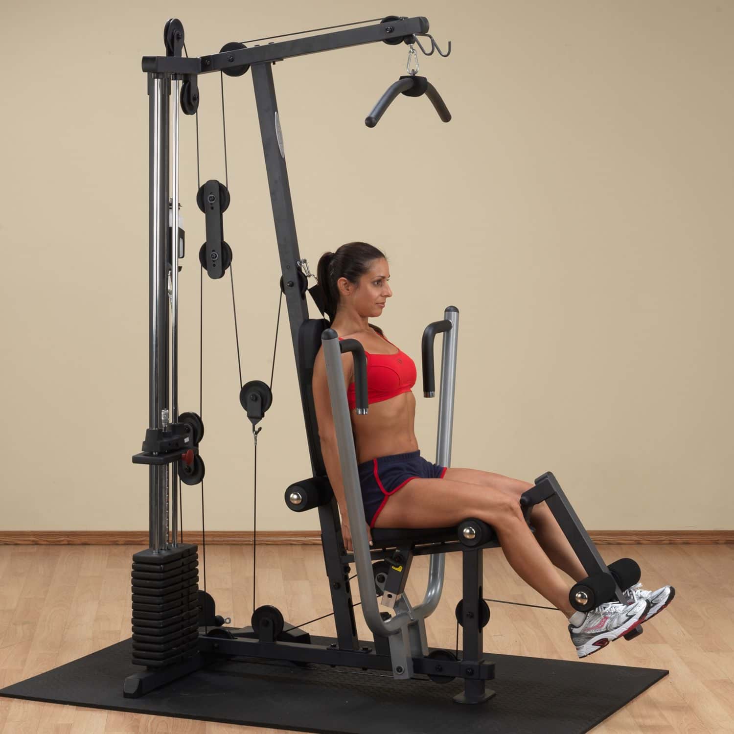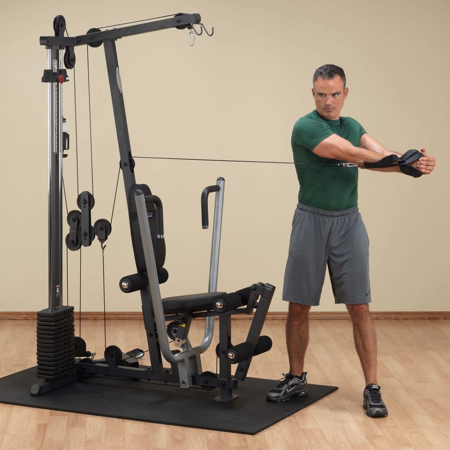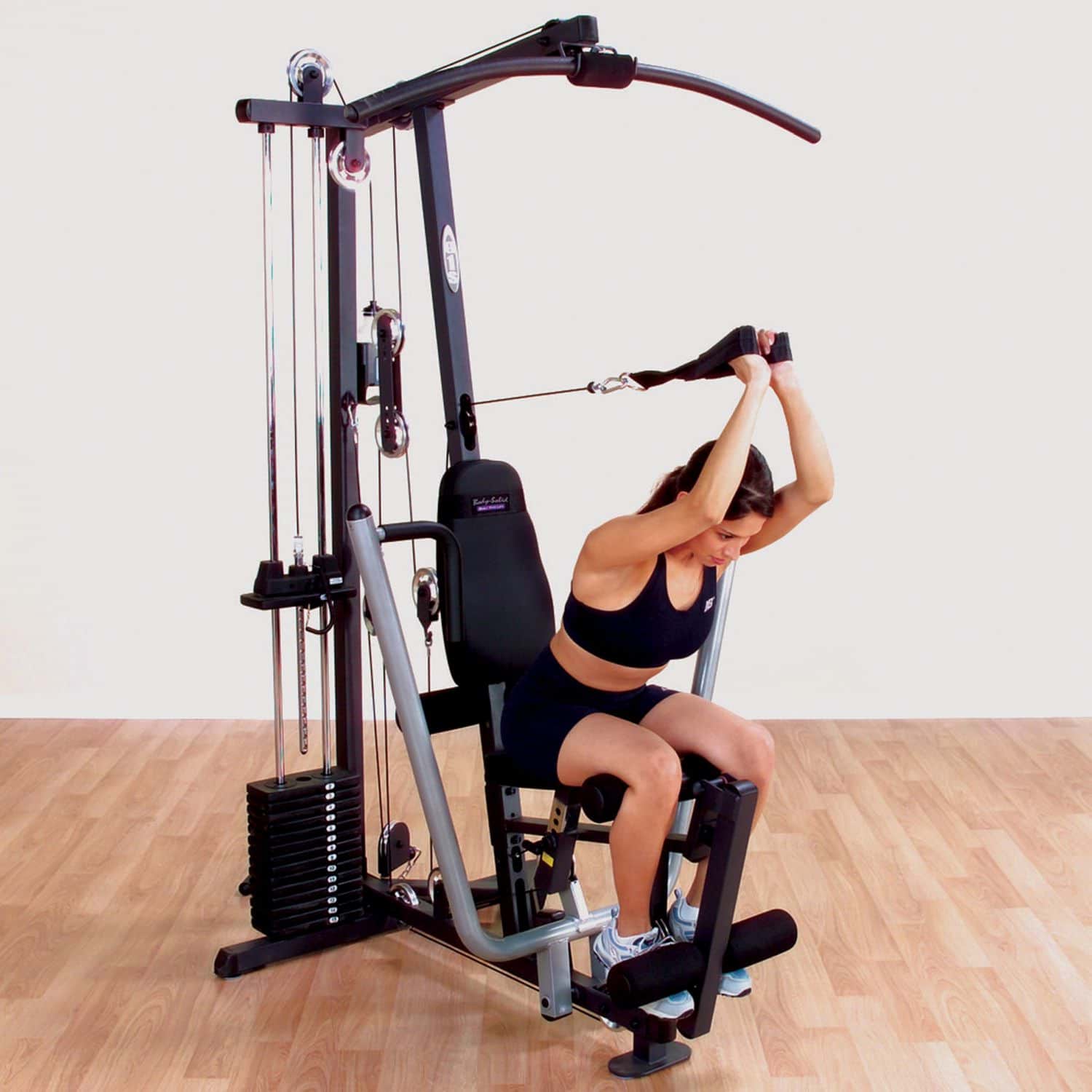 Die Ganzkörpertrainer aus der Body-Solid G-Serie werden nach den höchsten Fertigungsstandards und unter Verwendung der hochwertigsten Umlenkrollen, Kabel und Polsterungen hergestellt. Das platzsparende Design des G-1S ist das perfekte Einsteigermodell und verfügt über einen selektiven 72kg-Gewichtsblock sowie drei Zug-Vorrichtungen auf unterschiedlichen Höhen, die dem Nutzer eine Vielzahl von Übungen ermöglichen. Dabei ist der Multi-Grip-Pressarm biomechanisch für eine maximale Brustkontraktion und somit für eine hervorragende Muskelentwicklung ausgelegt. Das per Pop-Pin mehrfach höhenverstellbare Sitzpolster kann schnell und einfach auf jede Körpergröße eingestellt werden und sorgt während des Trainings für eine korrekte Körperpositionierung. Wartungsfreie, kugelgelagerte Umlenkrollen sowie ein nylonummanteltes Stahlseil aus dem Flugzeugbau garantieren einen friktionsfreien Bewegungsablauf bei jeder Übungseinheit.