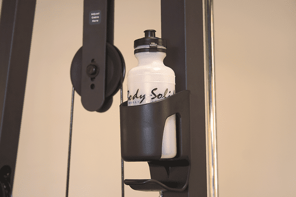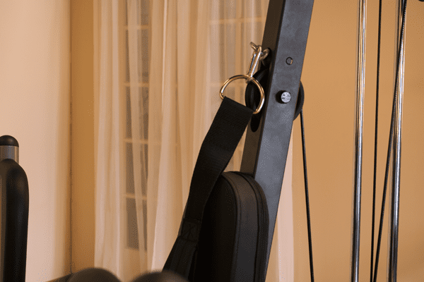 - inklusive Latzugstange, Ruderstange, Fußschlaufe, Bauch-/Trizepsgurt und praktischem Wasserflaschen- und Handtuchhalter.