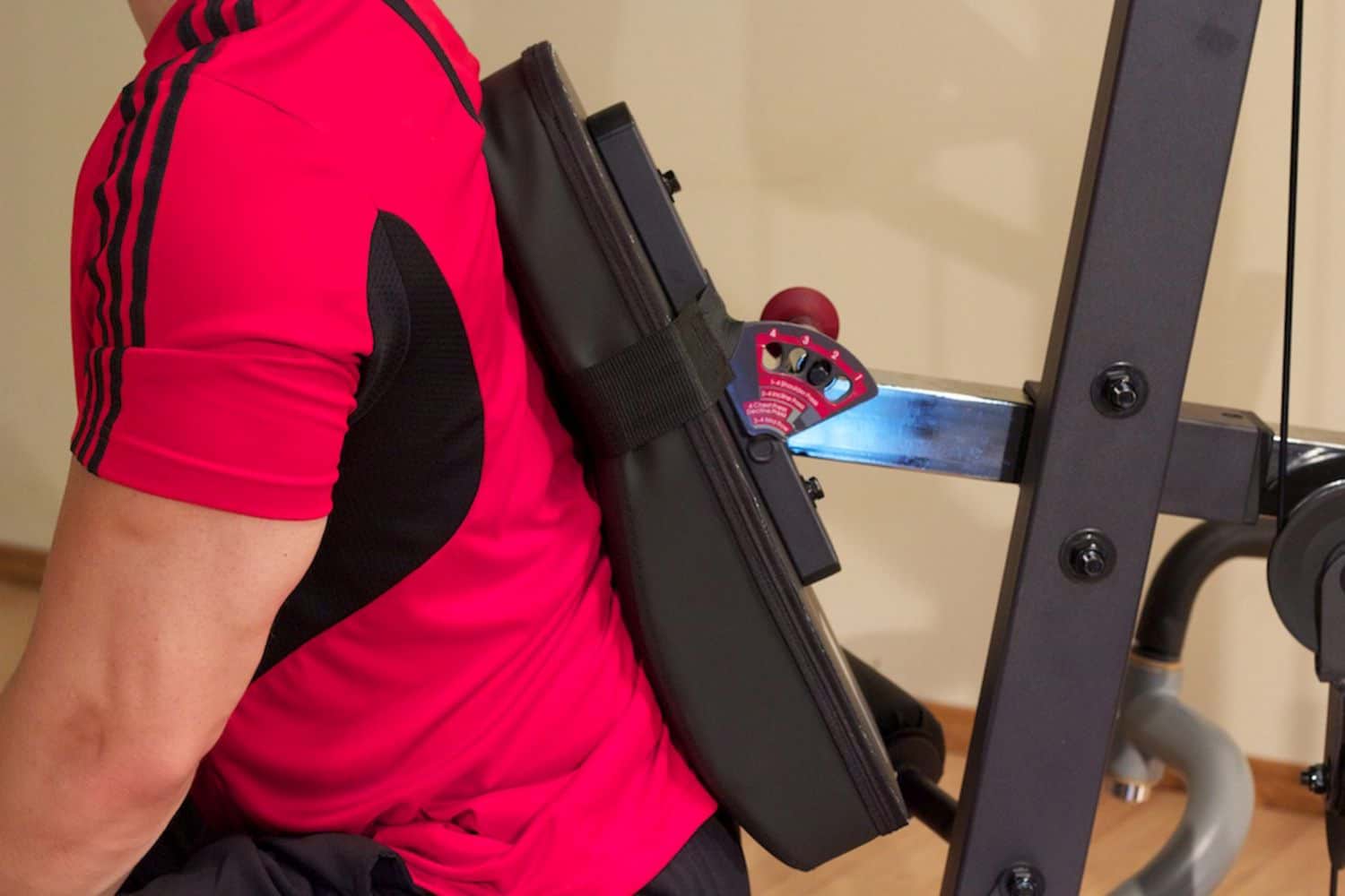 - dicke und bequeme Polsterrollen sowie selbstausrichtende, anatomisch geformte Beinstrecker-Polster für maximalen Komfort
