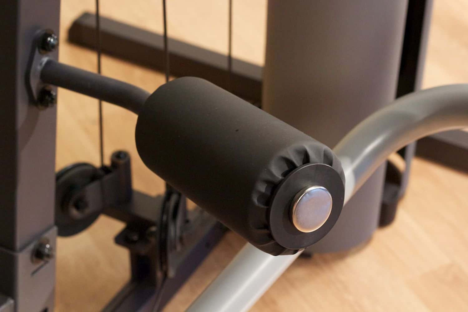 - drei Kabelzug-Vorrichtungen (unten am Beinstrecker/Beinbeuger, mittig über dem Rückenpolster und oben am Latzug)
