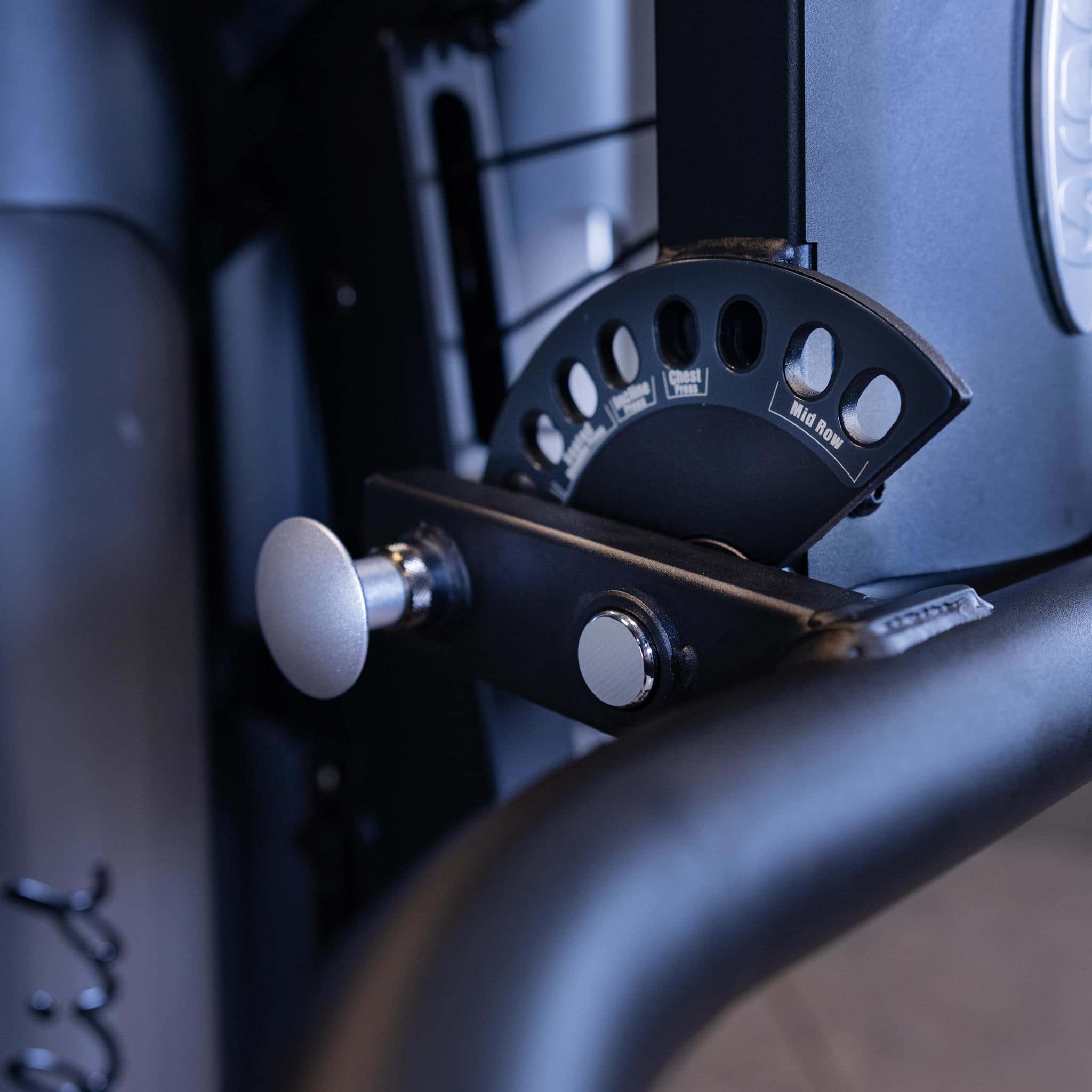 Der 9-fach verstellbare Drückerbügel der Press-Arm-Station wurde mit Multipositionsgriffen ausgestattet, die eine tiefe und effektive Muskelkontraktion bei Brust-, Schrägbank- und Schulterübungen garantiert. Zudem kann an dieser Station neben Latzug- und Ruderübungen, die in einer bequemen, sitzenden Position durchgeführt werden, auch der Beinstrecker sowie Beinbeuger trainiert werden. Die ebenfalls über den gleichen Gewichtsblock laufende Bein- und Wadenstation besitzt ein Übersetzungsverhältnis von 2:1, wodurch das G-9U die beeindruckende Kapazität einer Beinpresse mit 190kg besitzt (mit der Gewichtserweiterung wären es sogar 235kg). An der Butterfly-Station mit mehreren verschiedenen Startpositionen werden einseitige bzw. beidseitige Konditionierungen der Brust-, Rücken- sowie Schultermuskulatur ermöglicht. Darüber hinaus verfügt diese Station über eine mittlere sowie niedrige Kabelzug-Vorrichtung, sodass ein zielgenaues Bauchmuskel- und Ab-/Adduktorentraining möglich ist.
