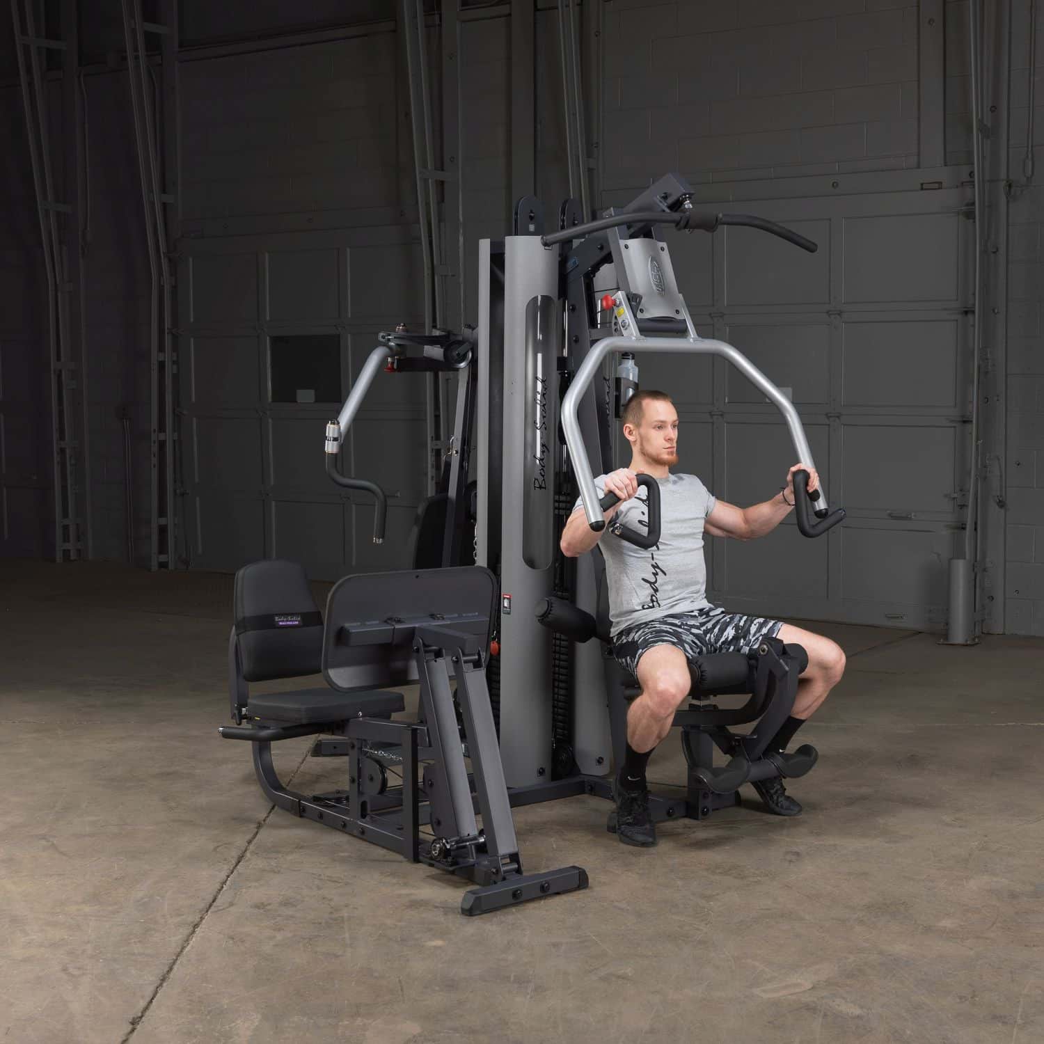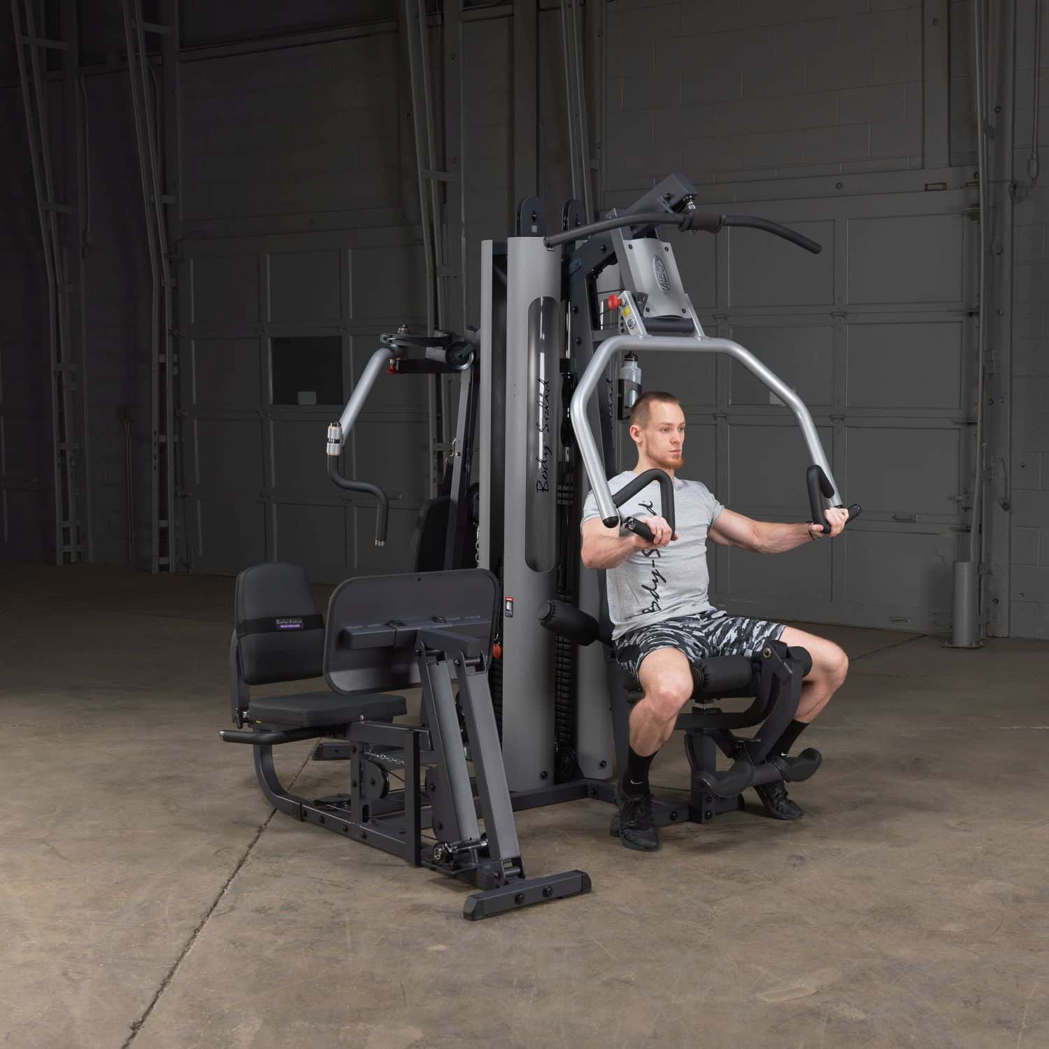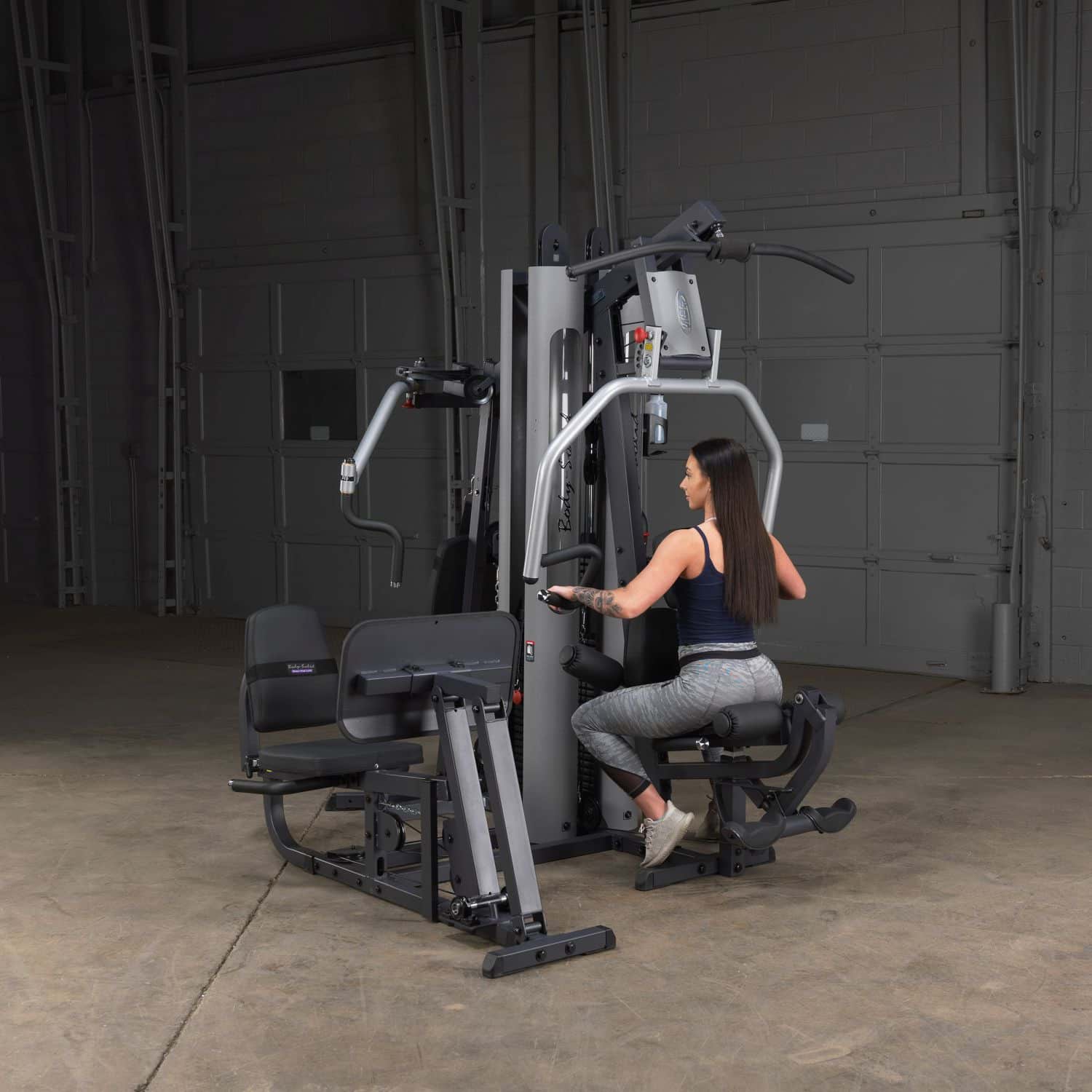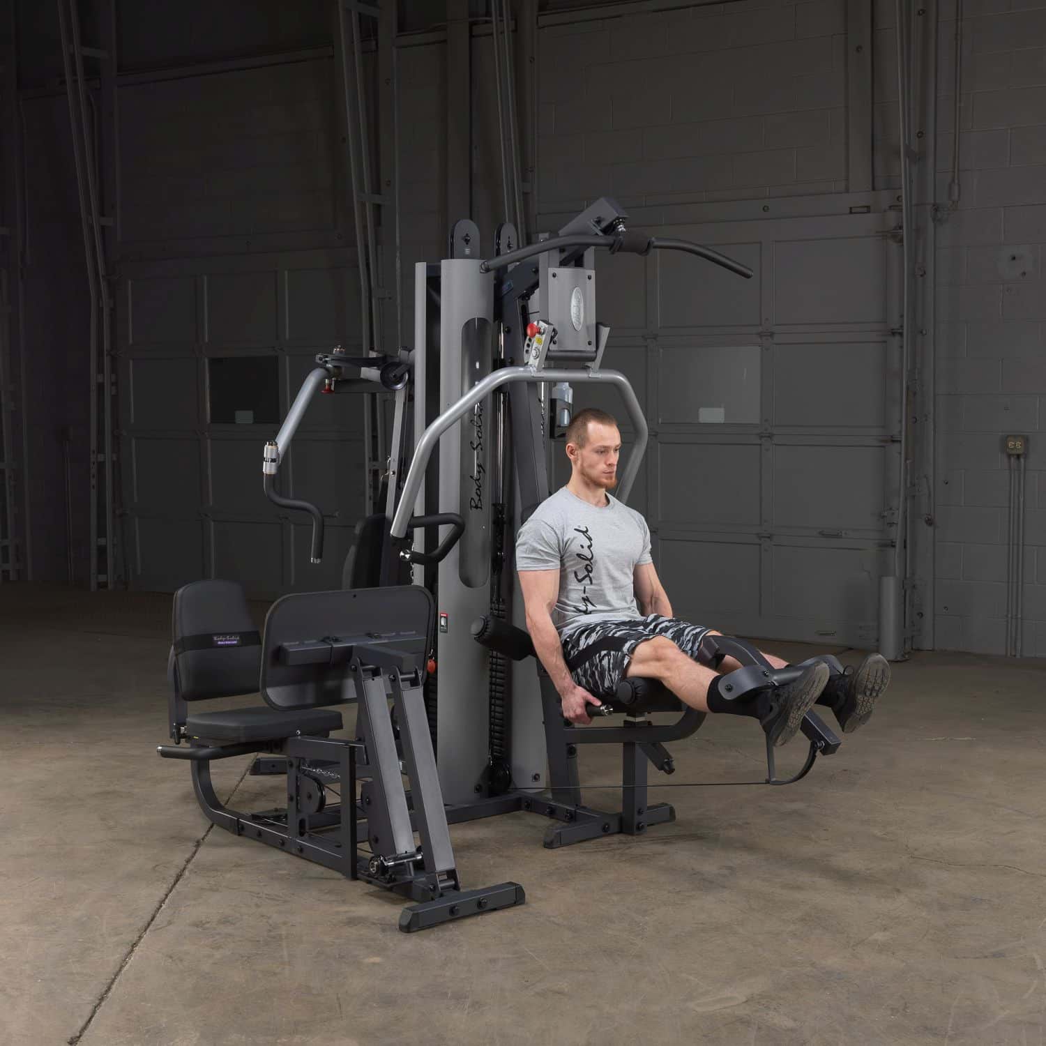 Der 9-fach verstellbare Drückerbügel der Press-Arm-Station wurde mit Multipositionsgriffen ausgestattet, die eine tiefe und effektive Muskelkontraktion bei Brust-, Schrägbank- und Schulterübungen garantiert. Zudem kann an dieser Station neben Latzug- und Ruderübungen, die in einer bequemen, sitzenden Position durchgeführt werden, auch der Beinstrecker sowie Beinbeuger trainiert werden. Die ebenfalls über den gleichen Gewichtsblock laufende Bein- und Wadenstation besitzt ein Übersetzungsverhältnis von 2:1, wodurch das G-9U die beeindruckende Kapazität einer Beinpresse mit 190kg besitzt (mit der Gewichtserweiterung wären es sogar 235kg). An der Butterfly-Station mit mehreren verschiedenen Startpositionen werden einseitige bzw. beidseitige Konditionierungen der Brust-, Rücken- sowie Schultermuskulatur ermöglicht. Darüber hinaus verfügt diese Station über eine mittlere sowie niedrige Kabelzug-Vorrichtung, sodass ein zielgenaues Bauchmuskel- und Ab-/Adduktorentraining möglich ist.