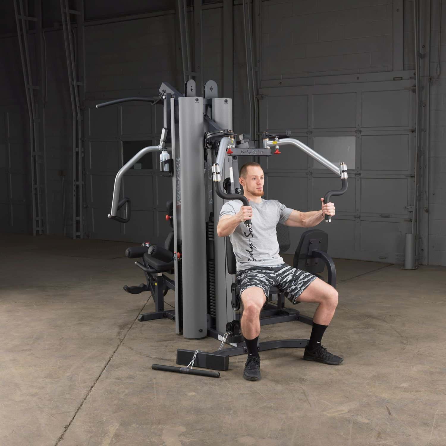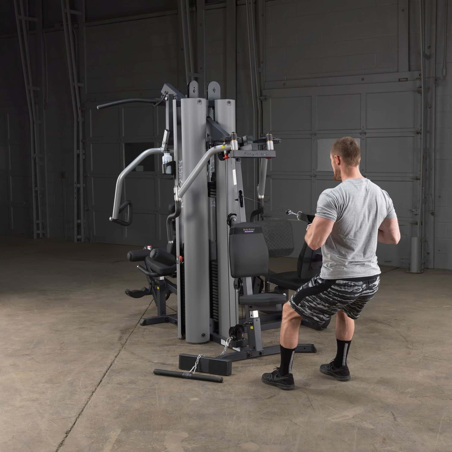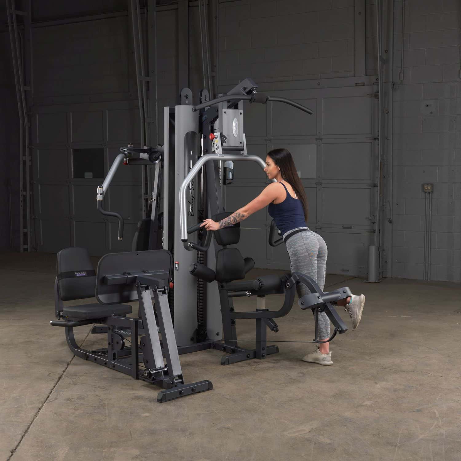 Der Body-Solid G-9U Ganzkörpertrainer verfügt über drei Trainingsstationen mit zwei separaten Steckgewichtsblöcken, wodurch sich diese Kraftstation perfekt für das Partnertraining eignet. Die Beinpresse/Wadenstation sowie die multifunktionale Press-Arm-Station nutzen dabei den gleichen Gewichtsblock, sodass eine Person an einer der beiden Stationen und ein anderer Nutzer an der Butterfly-Station mit zwei zusätzlichen Kabelzug-Vorrichtungen trainieren kann. Mit der optionalen Kniehebe- / Dipstation GKR-9 könnten sogar bis zu drei Personen gleichzeitig trainieren.