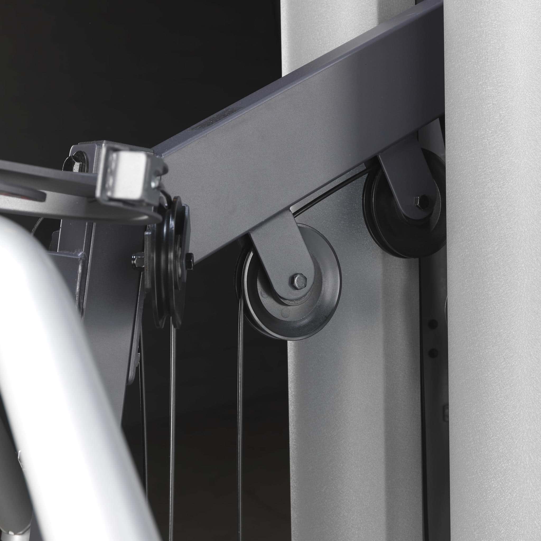 - kugelgelagerte Umlenkrollen, nylonummanteltes Stahlseil für einen friktionsfreien Bewegungsablauf