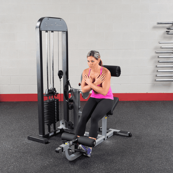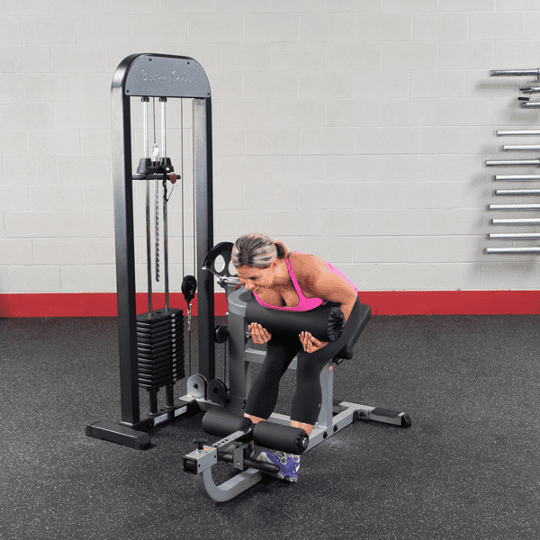 Mit dem Body-Solid GCAB-360 Doppelfunktionsgerät können Sie Ihre Bauchmuskeln straffen, Ihren unteren Rücken stärken und Ihre Flexibilität erhöhen, ohne die Trainingsposition zu verändern. Der verstellbare Trainingsarm kann dabei so positioniert werden, dass sowohl die Bauch- als auch die Rückenmuskeln trainiert werden können. Das innovative Design mit einer 25,4mm-Hantelscheibenaufnahme basiert auf den Ein-Stationen-Geräten der Fitnessstudios. Sitzt der Benutzer vor der verstellbaren Polsterrolle, wird der Rückenstrecker / der untere Rückenbereich trainiert. Befindet sich der Anwender hinter der Rolle, funktioniert das Gerät wie eine Bauchpresse und es kommt zu einer effektiven Belastung der Bauchmuskulatur. Dabei kann die Startposition über die 27 Einstellpositionen der Auswahlscheibe individuell eingestellt werden. Dank des höhenverstellbaren sowie um 30° angewinkelten Sitzpolsters und den ebenfalls verstellbaren Fuß-Polsterrollen, kann der Bauch- und Rückentrainer schnell und einfach an jeden Benutzer angepasst werden. Extra starke, hochwertige DuraFirm Polster mit reißfester Doppelnaht sowie eine übergroße Polsterrolle sorgen dabei für eine optimale Positionierung und ein komfortables Trainingsgefühl. Durch den 72kg- oder 95kg-Steckgewichtsblock kann das Trainingsgewicht per Steckpin schnell und einfach eingestellt werden.