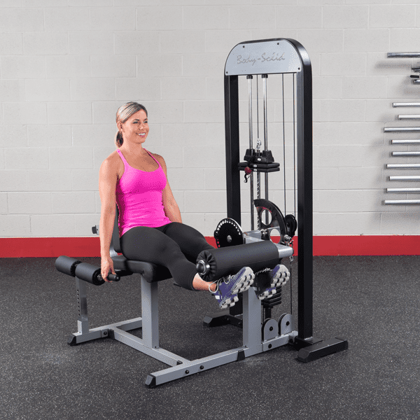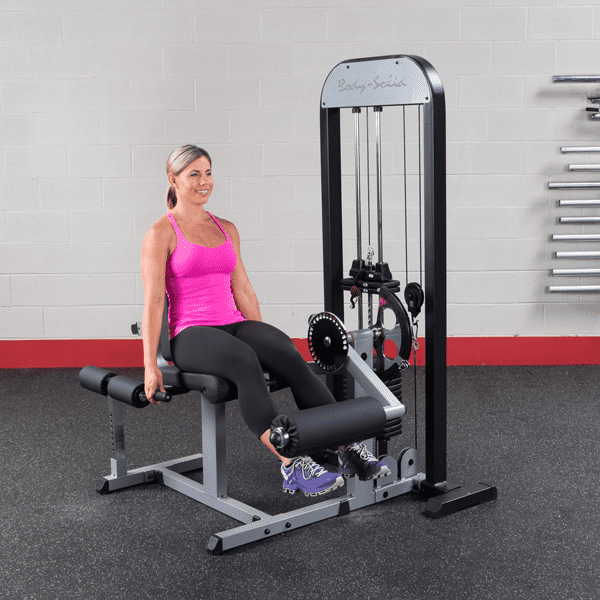 Mit dem Body-Solid GCEC-340 trainieren Sie Ihren Beinstrecker und Beinbeuger an nur einem Gerät, ohne die Trainingsposition zu verändern. Dank des angewinkelten Sitzpolsters und dem herausnehmbaren Oberschenkel-Arretierungspolsters wird der Beinbizeps bzw. Beintrizeps isoliert, sodass diese effektiv belastet werden können. Zudem wird während der Übungsdurchführung die Belastung auf den unteren Rücken erheblich reduziert. Durch die 27 Einstellmöglichkeiten der Auswahlscheibe, die eine ideale Startposition sicherstellt und dem anatomisch geformten, 7-fach verstellbaren Rückenpolster, lässt sich der Beintrainer individuell an jeden Benutzer anpassen. Extra starke, hochwertige DuraFirm-Polster mit reißfester Doppelnaht, zwei Haltegriffe und ein Oberschenkel-Arretierpolster sorgen für eine optimale Positionierung und ein komfortables Training.