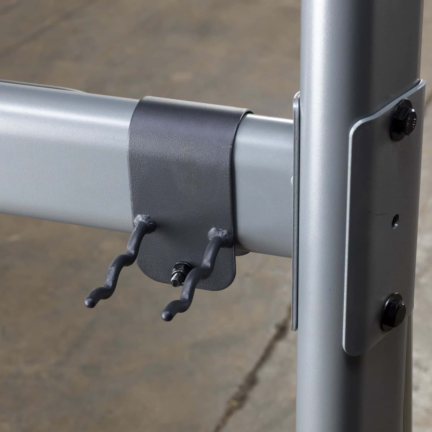 Von einem praktischen Platz zum Aufhängen Ihres Handtuchs über eine stabile Stütze für Dehnungsübungen bis hin zu einem Griff für Beinübungen ist das GDCC-RACK eine unverzichtbare Ergänzung für Ihren Body-Solid Multi-Kabelzug.