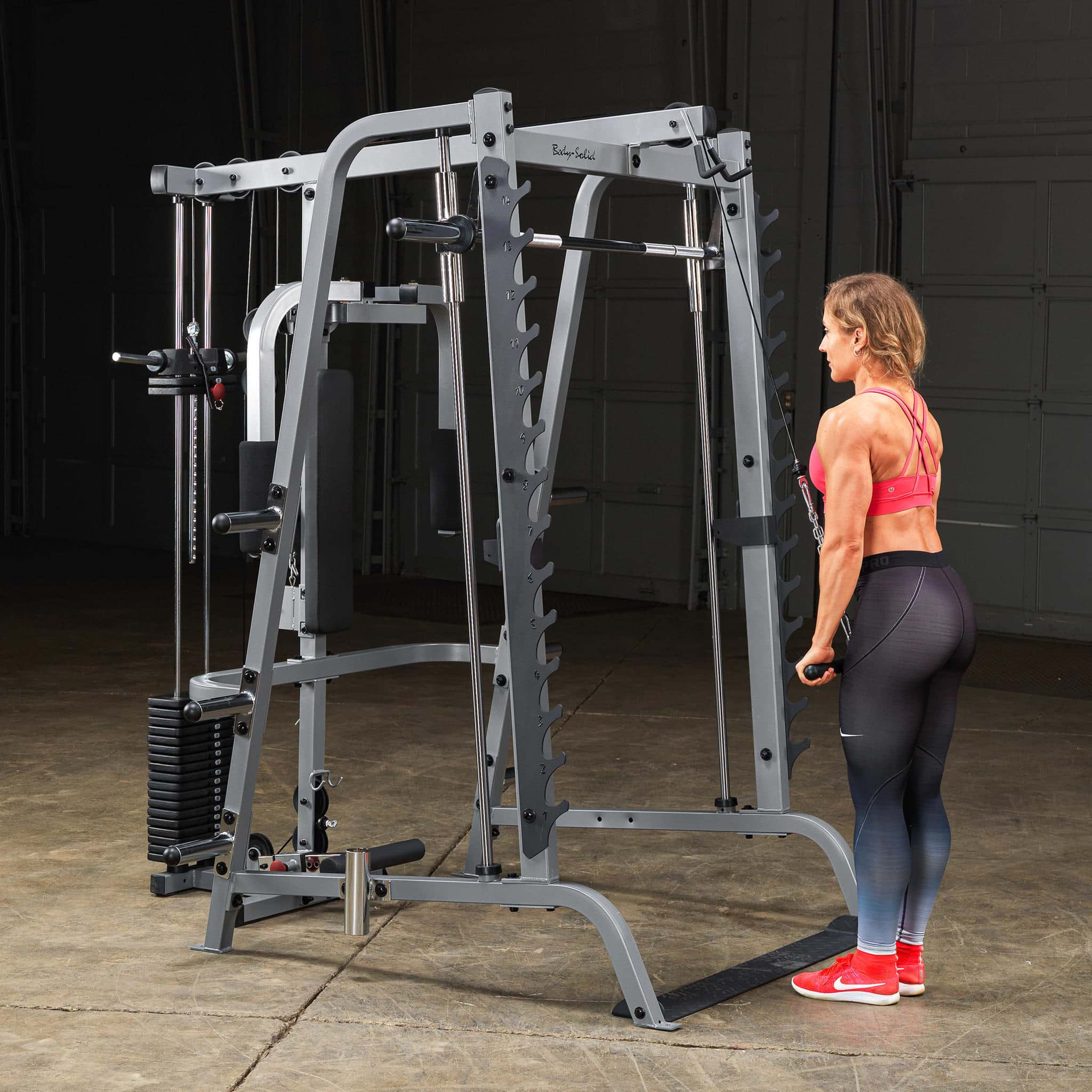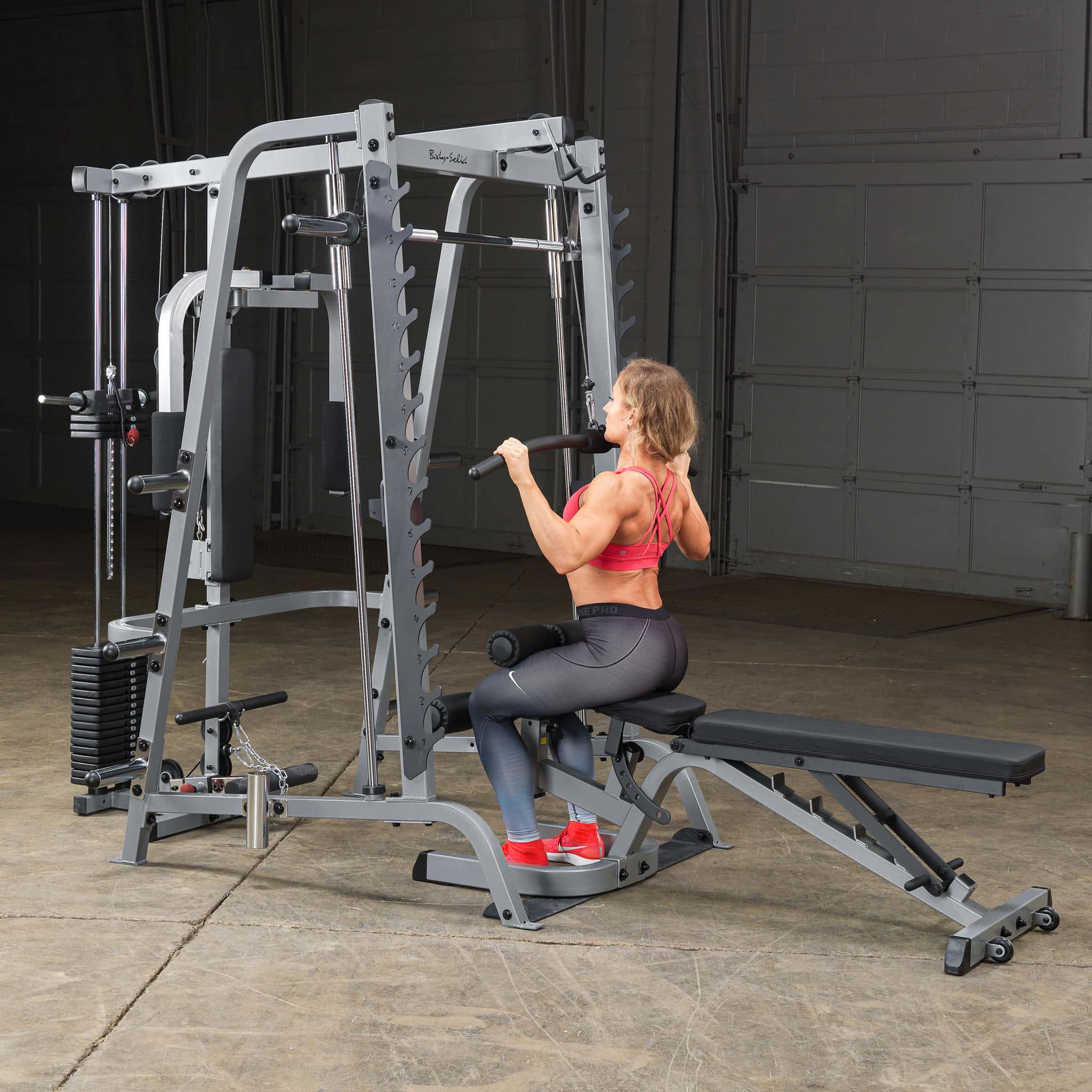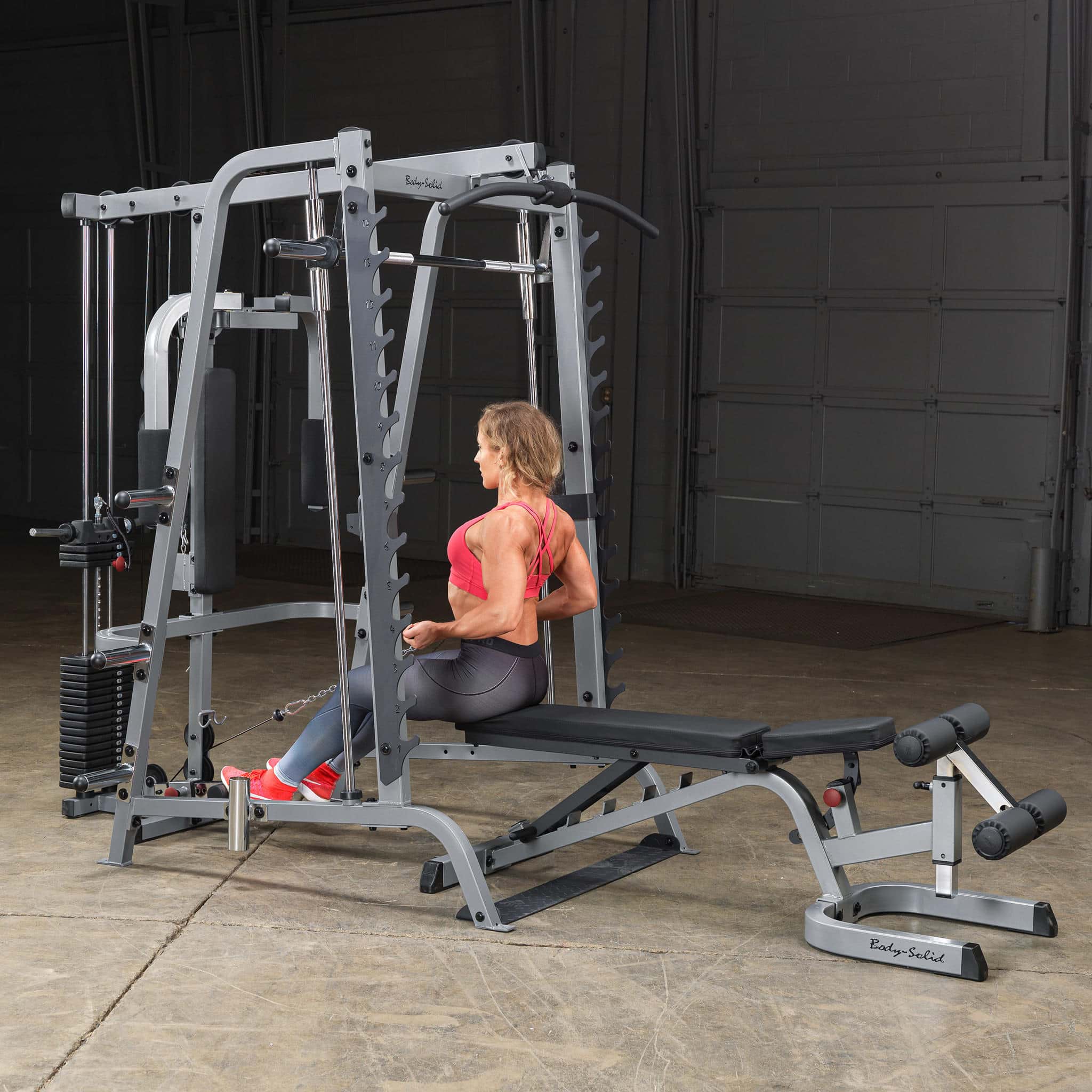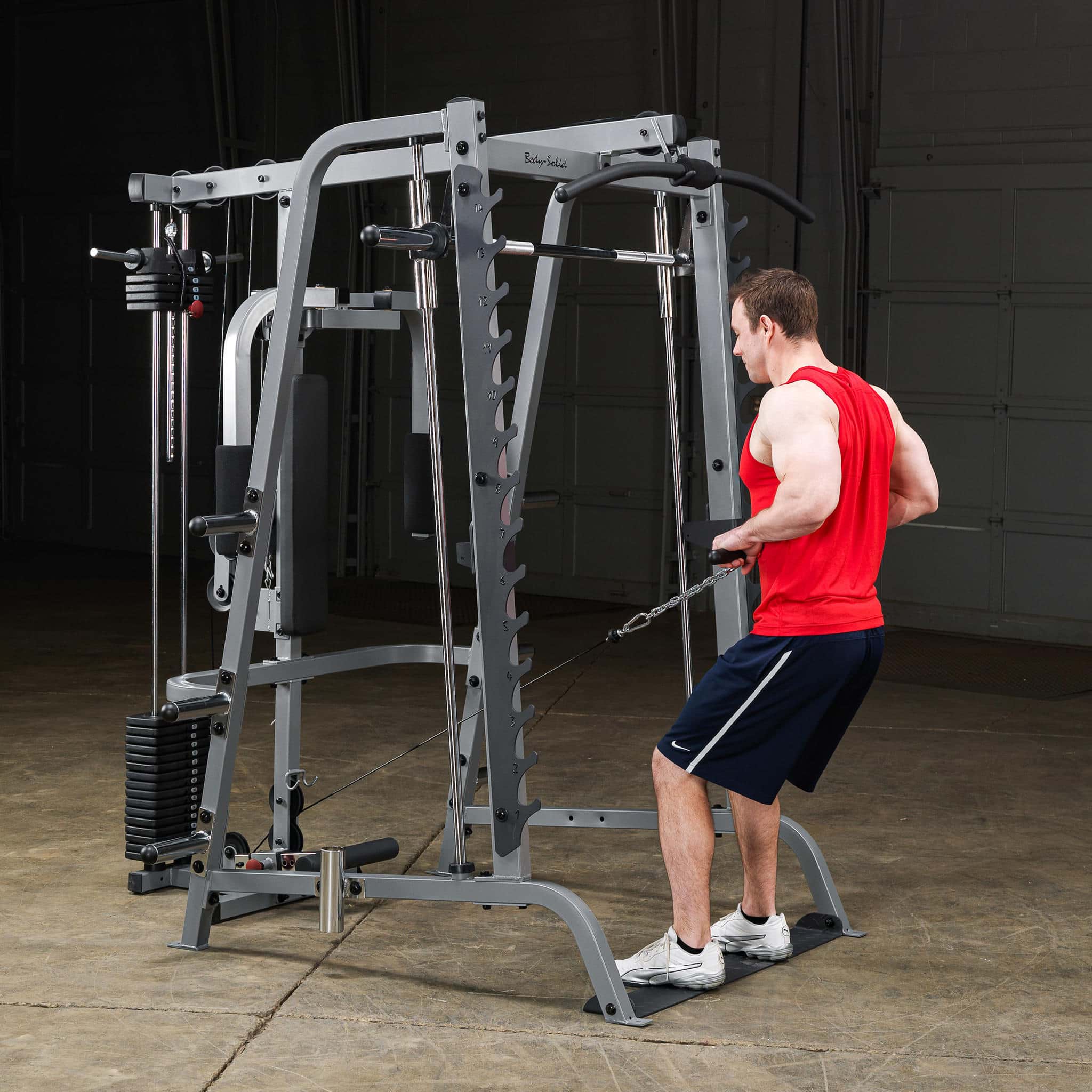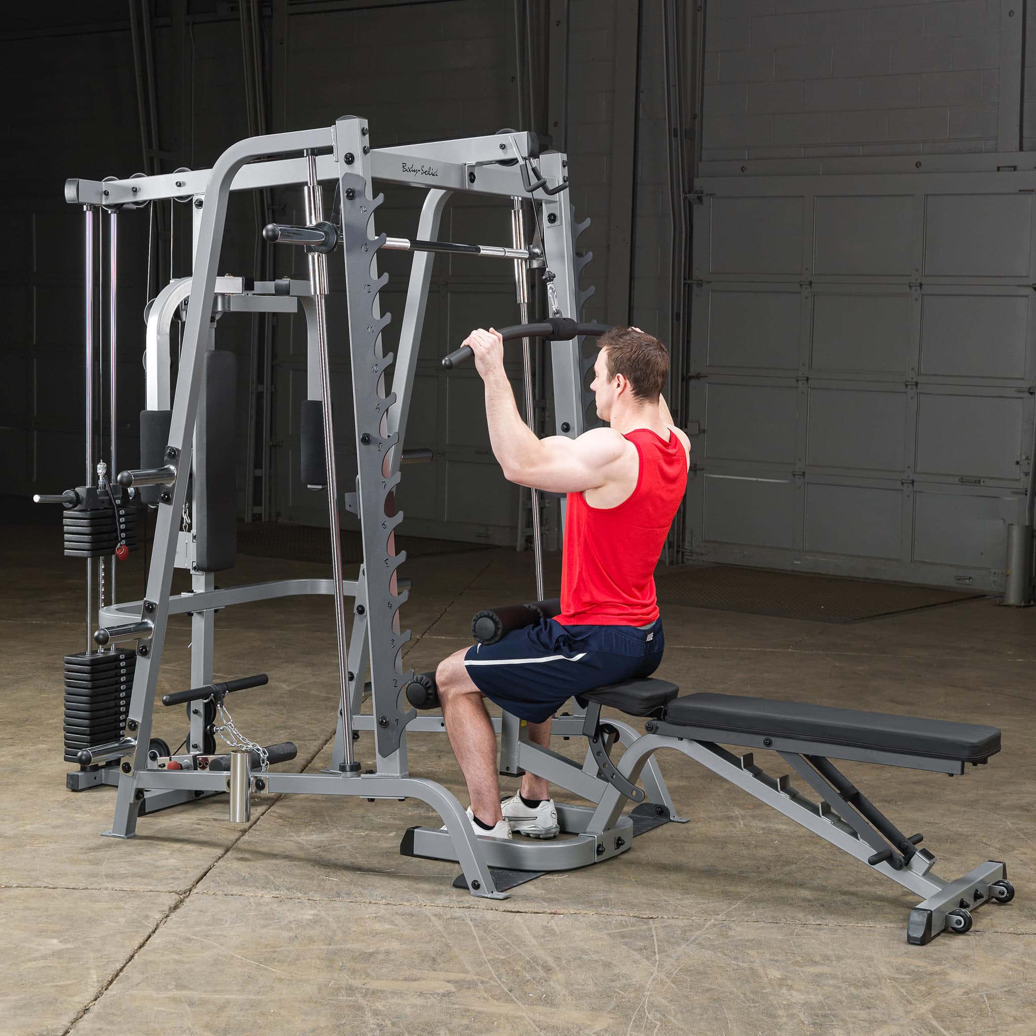 Beschreibung Beschreibung Nur kompatibel mit der Body-Solid Smith Machine GS-348 Durch verschiedene Griffbreiten beim Latziehen beanspruchen Sie unterschiedliche Bereiche der Rückenmuskulatur Dadurch kann der Latissimus, der Trapezmuskel und die hintere Schultermuskulatur effektiv belastet werden Sehr leichter und geräuscharmer Lauf durch nylonbeschichtetes Stahlkabel und kugelgelagerte Rollen Inklusive 210lbs-Steckgewichtsblock [95kg] mit zusätzlichen Scheibenaufnahmen Technische Details Stellfläche (L x B x H in cm) 198 x 175 x 213 Gewicht 135kg Benutzer, die diesen Artikel gekauft haben, haben auch gekauft Hantelscheibe mit 2 Grifflöchern, gummiert, 50mm 1,33 € *