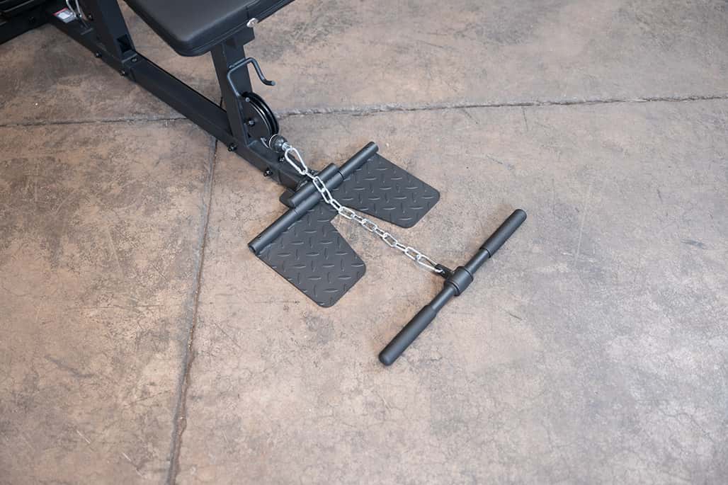 Mit ihrem platzsparenden Design findet die Maschine auch in kleineren Räumen problemlos Platz. Die verstellbare Oberschenkelrolle sorgt für sicheren Halt und passt sich jedem Nutzer individuell an.