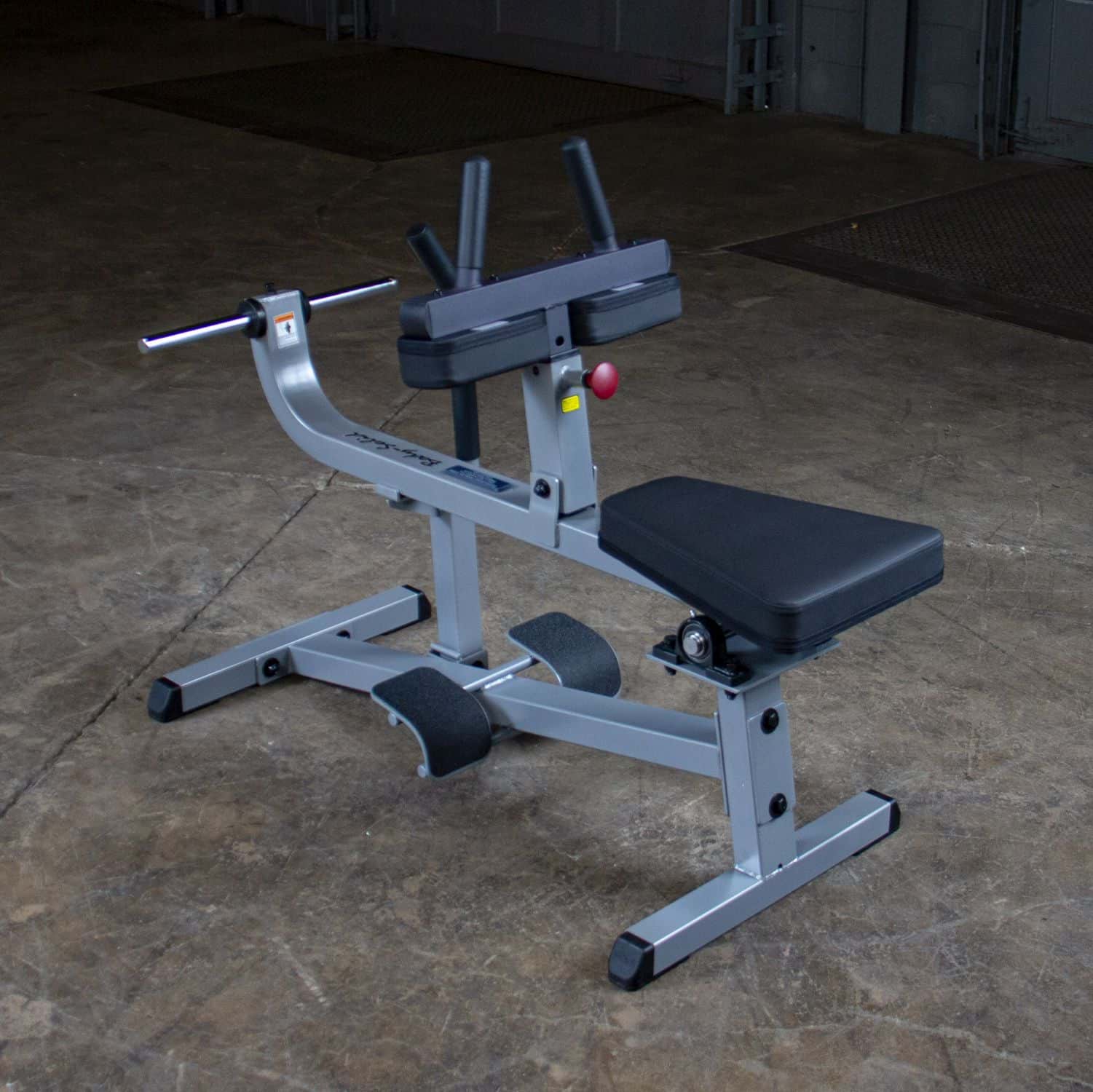 Die Body-Solid Wadenmaschine ist für ein extremes, professionelles Wadentraining konzipiert worden. Dank der sitzenden Position belasten Sie im Gegensatz zu anderen Wadenübungen Ihre Wadenmuskulatur nur mit dem aufgelegten Gewicht. Um auch einen friktionsfreien Bewegungsablauf beim Training mit hohen Gewichten zu gewährleisten, verfügt die GSCR-349 an den Hauptdrehpunkten über kugelgelagerte Pillow-Block-Lager. Das Übersetzungsverhältnis vom Trainingswiderstand zum aufgelegten Gewicht beträgt 3:1, sodass sich die Wadenmaschine perfekt zum Aufbau einer massiven Wadenmuskulatur eignet. Die rutschfeste, abgerundete Fußauflage sorgt dabei für einen maximalen Bewegungsradius. Die extrem dicke Kniepolsterung mit den angebrachten Handgriffen unterstützt Sie zudem bei der Übungsdurchführung der letzten Wiederholungen.