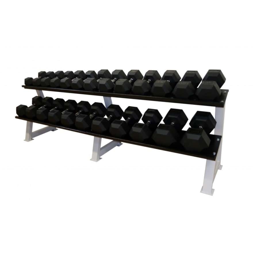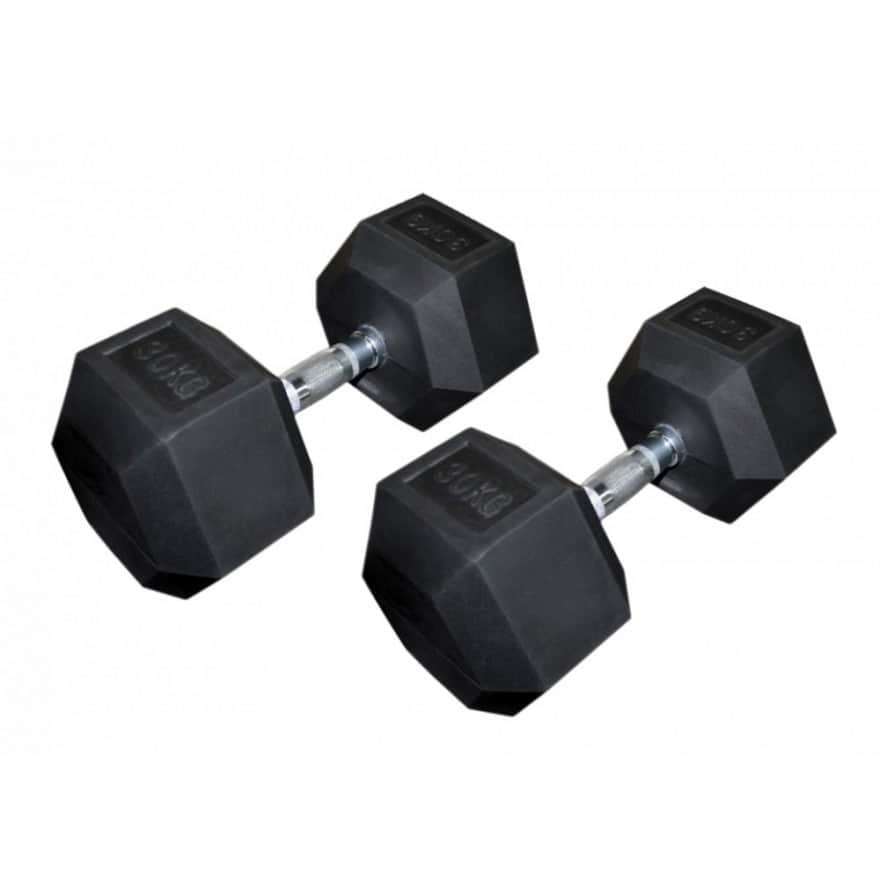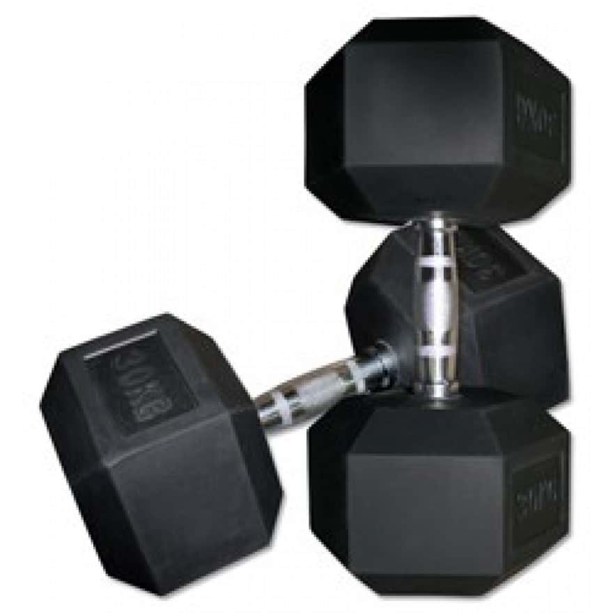 - Hex-Hanteln aus einem extrem robusten Stahlkern mit aufgepresster Gummi-Ummantelung und KG-Prägung