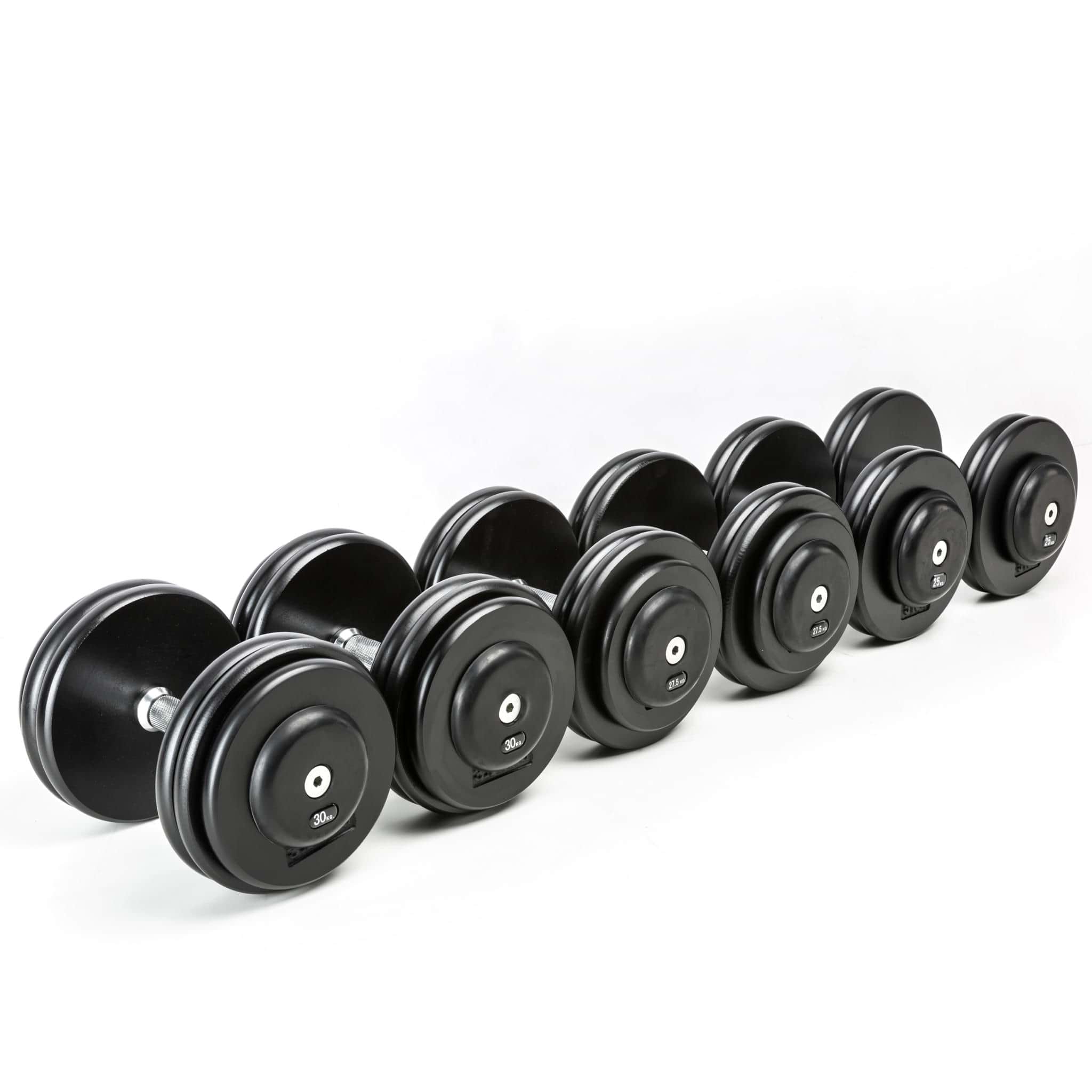Hochwertiges Gusseisen: Die Hantelscheiben bestehen aus strapazierfähigem Gusseisen, das für eine lange Haltbarkeit und eine hohe Belastbarkeit sorgt.