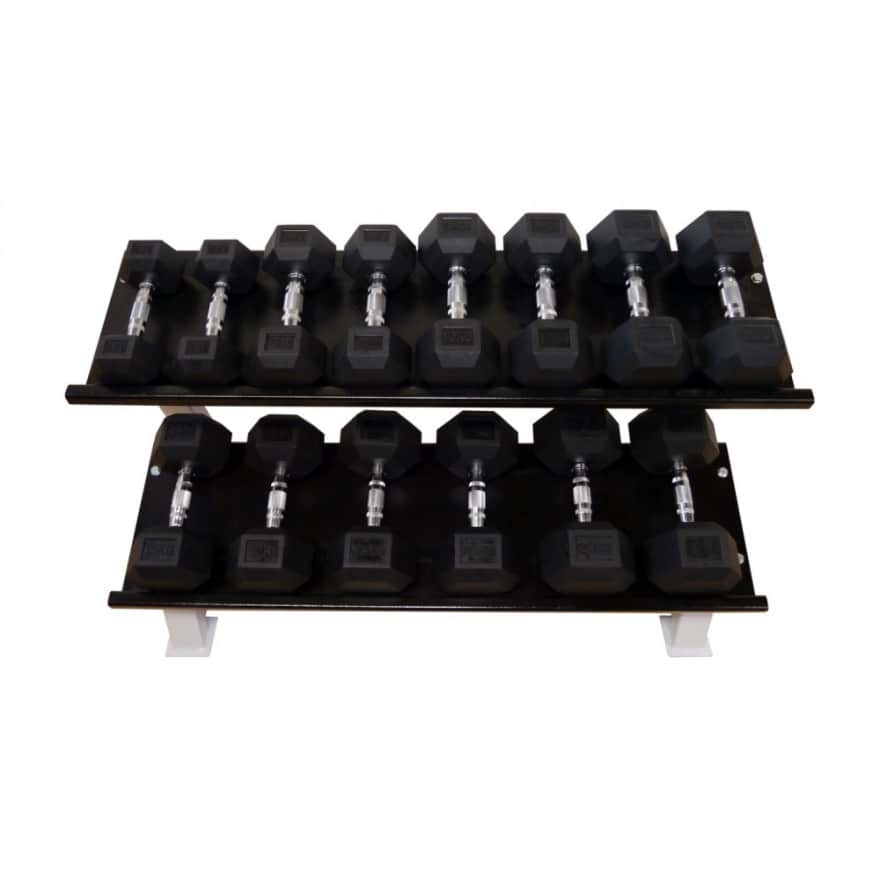 - Hex-Hanteln aus einem extrem robusten Stahlkern mit aufgepresster Gummi-Ummantelung und KG-Prägung