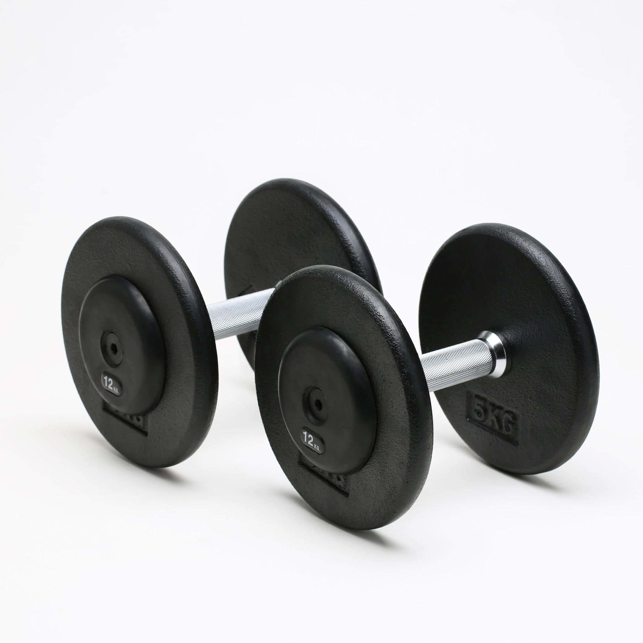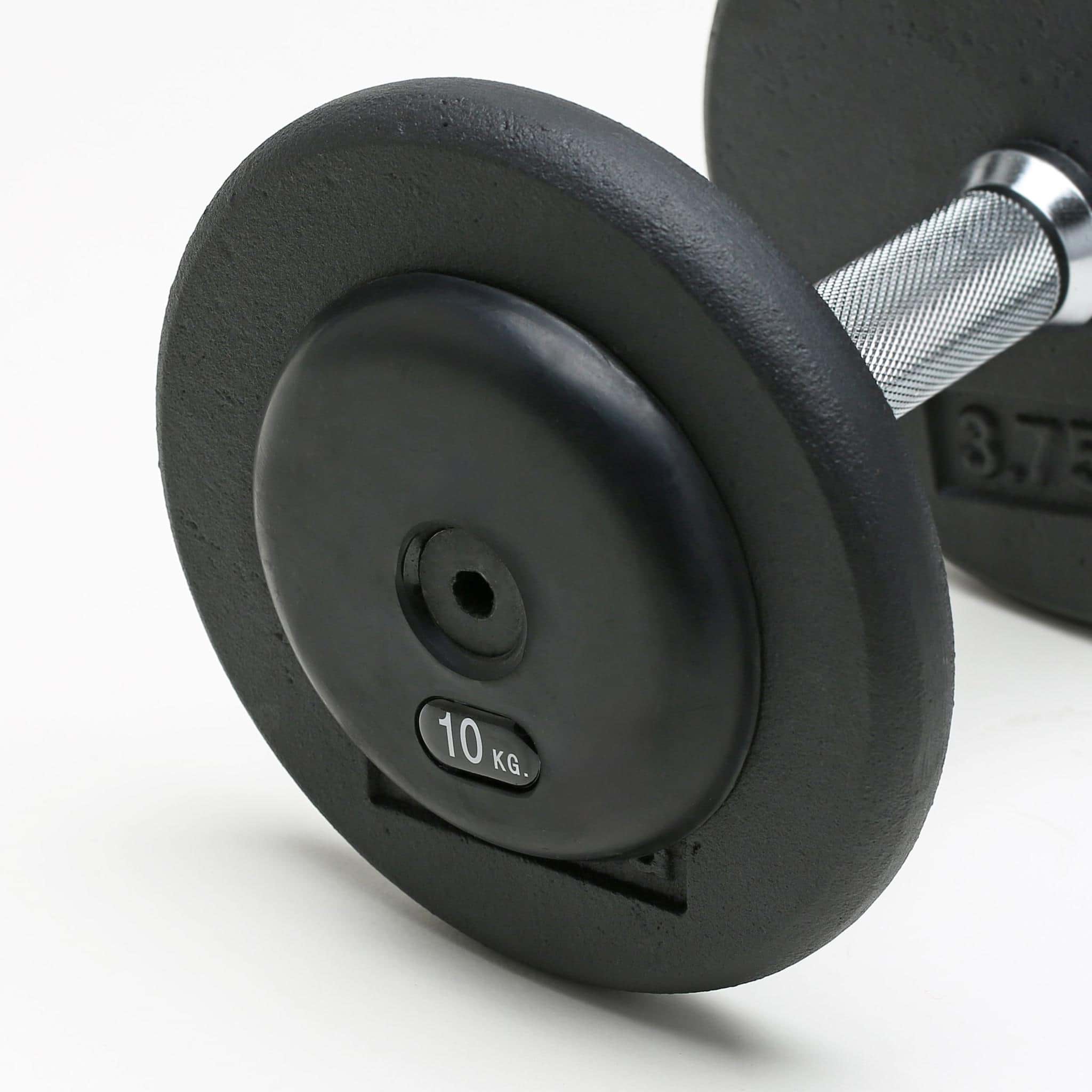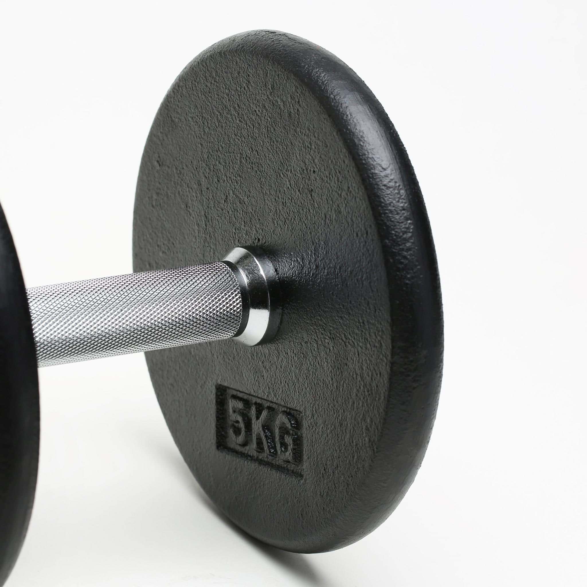 - die Hantelscheiben bestehen aus einem massiven Gusskern, wodurch sie unempfindlich und widerstandsfähig gegen Abrieb und Abplatzungen sind