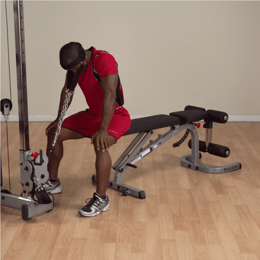 - kann mit Hantelscheiben oder Kabelzügen kombiniert werden