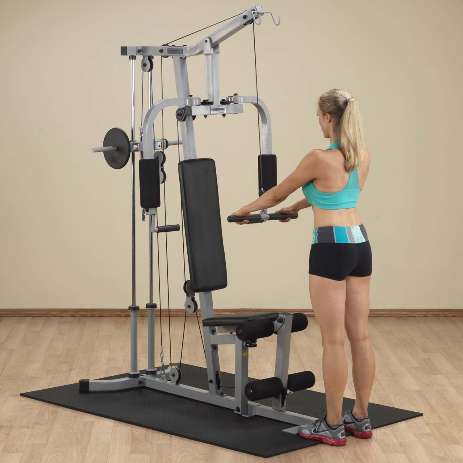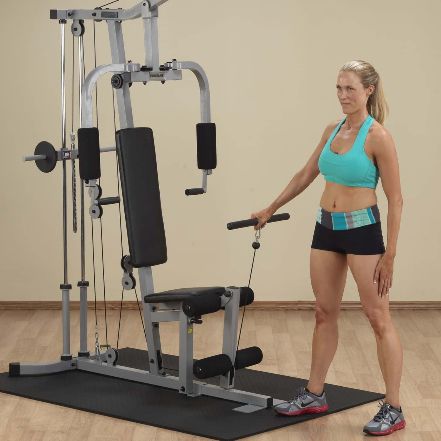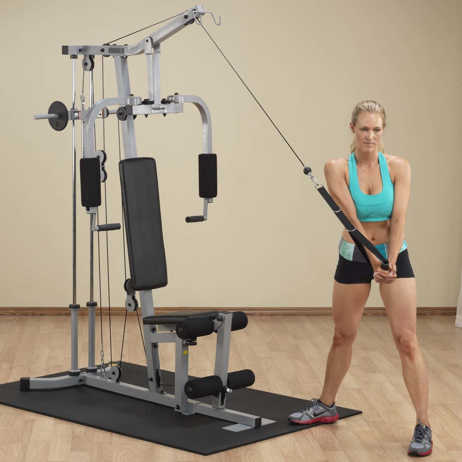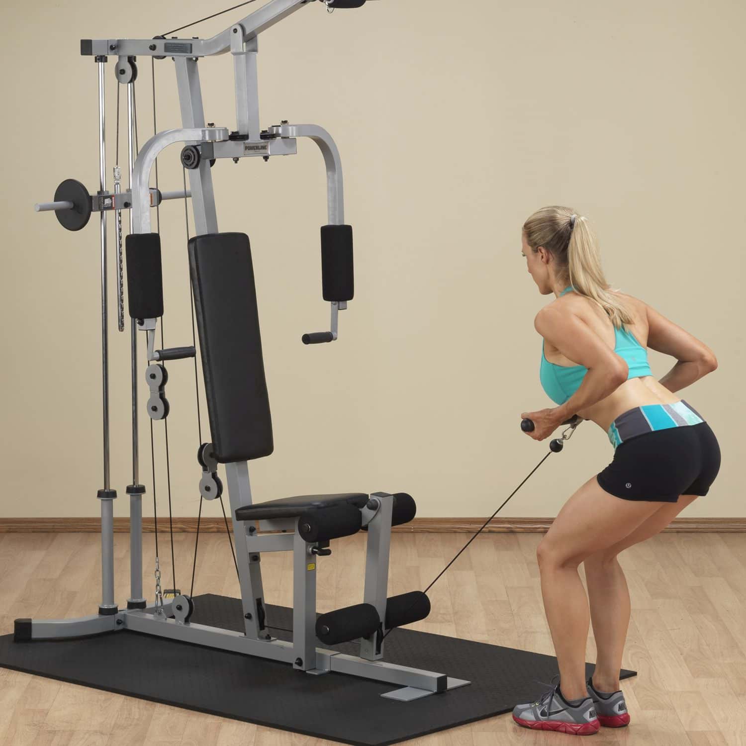 Der Body-Solid Ganzkörpertrainer aus der Powerline-Serie ist das perfekte Einsteigermodell für Ihr Home-Gym. Das PHG-1000X verfügt über zwei Kabelzug-Vorrichtungen (unten und oben am Gerät), einem Bankdrückbügel mit integrierten Butterflyarmen sowie einer Beinstation. Dabei ist ein unmittelbarer Wechsel vom Bankdrücken zum Butterfly möglich, da eine Verstellung des Gerätes für die verschiedenen Übungen nicht erforderlich ist. Die Kraftstation ist für die Nutzung von Hantelscheiben konzipiert worden, kann jedoch aber auch optional mit einem 72kg-Steckgewichtsblock ausgestattet werden, sodass der Trainingswiderstand schnell und einfach eingestellt werden kann. Zusätzlich zu dem Gewichtspaket können zusätzlich auch Hantelscheiben zur Erhöhung des Trainingswiderstandes verwendet werden. Kugelgelagerte Umlenkrollen, ein nylonummanteltes Stahlseil aus dem Flugzeugbau sowie Gewichtsplatten mit Nylonbuchsen garantieren dabei einen friktionsfreien Bewegungsablauf.