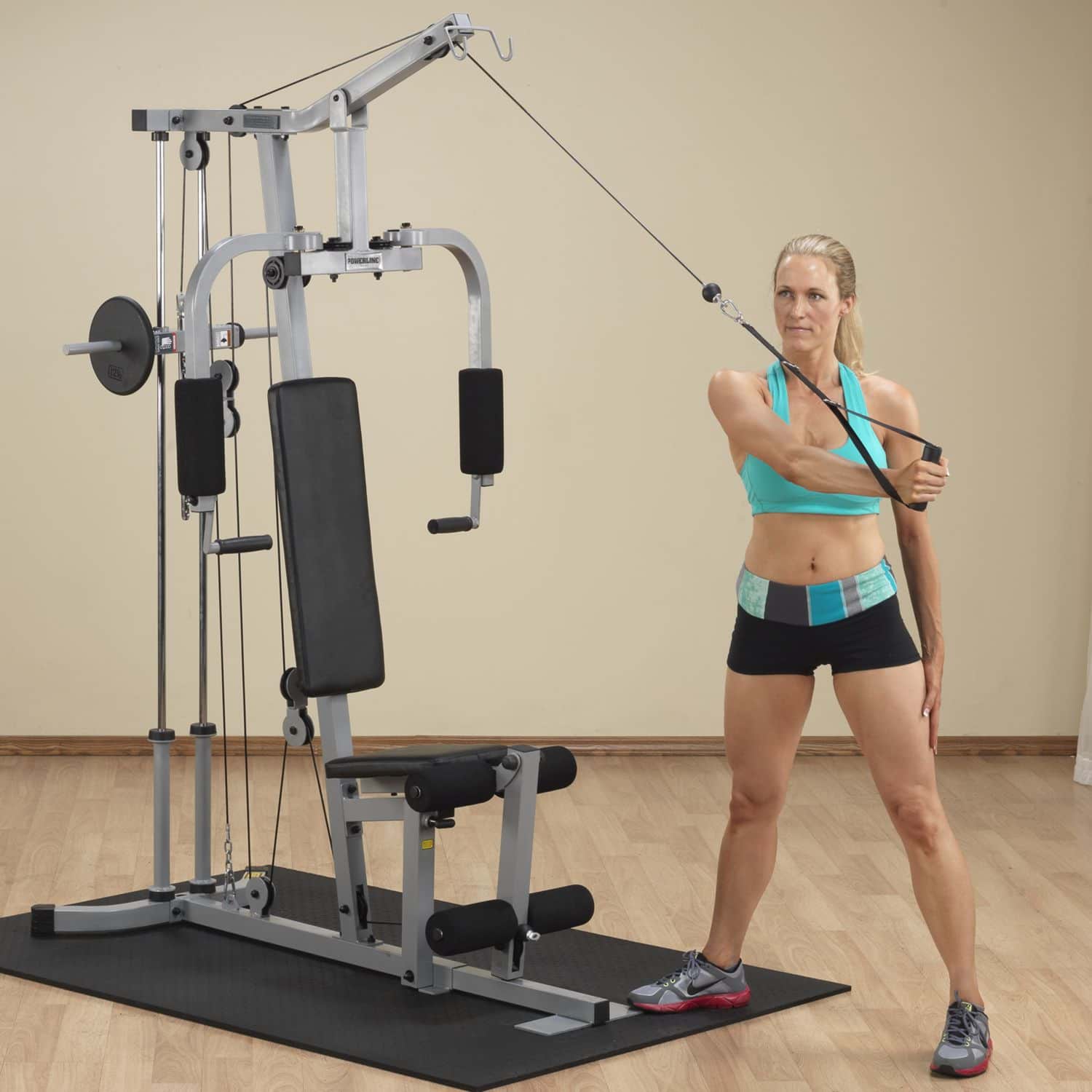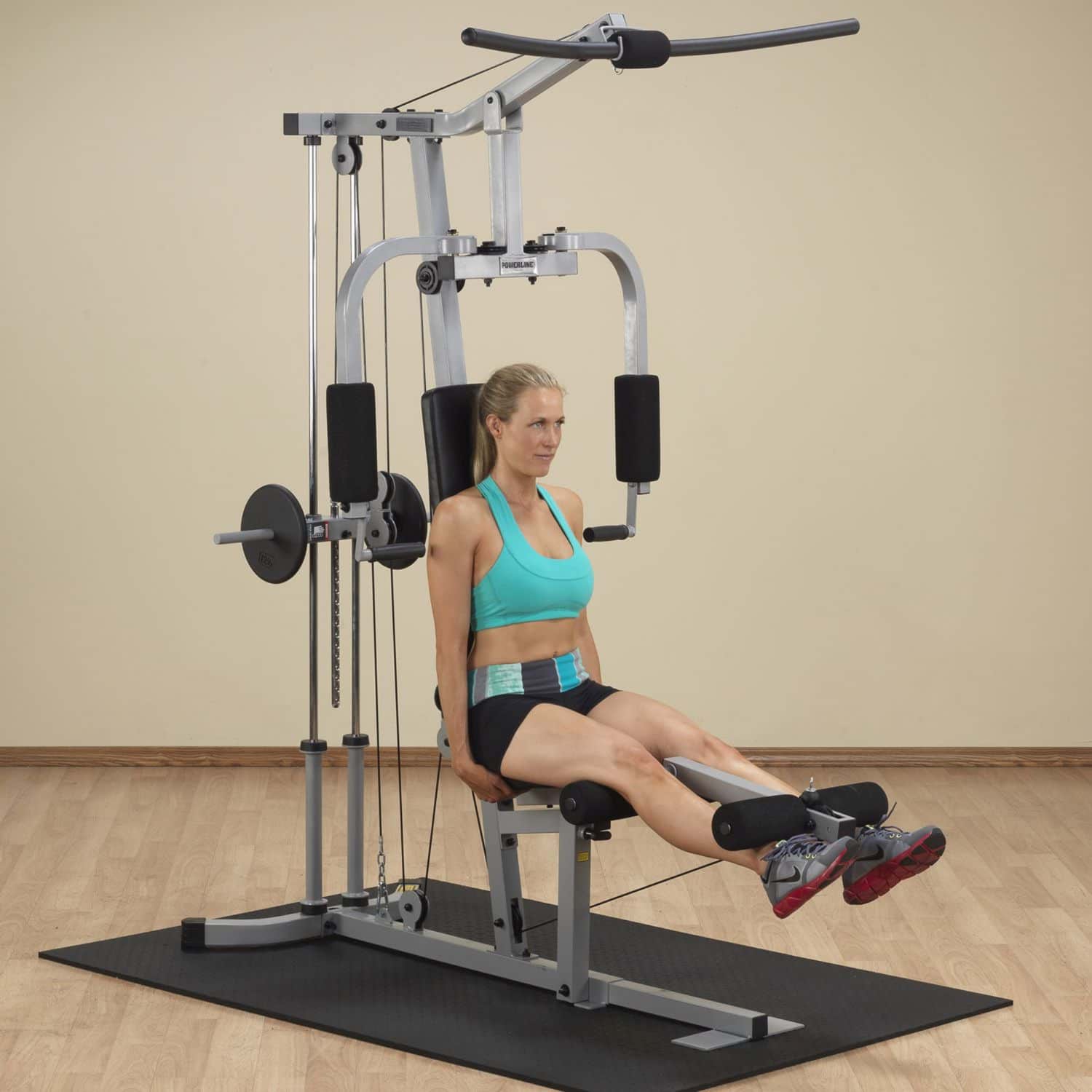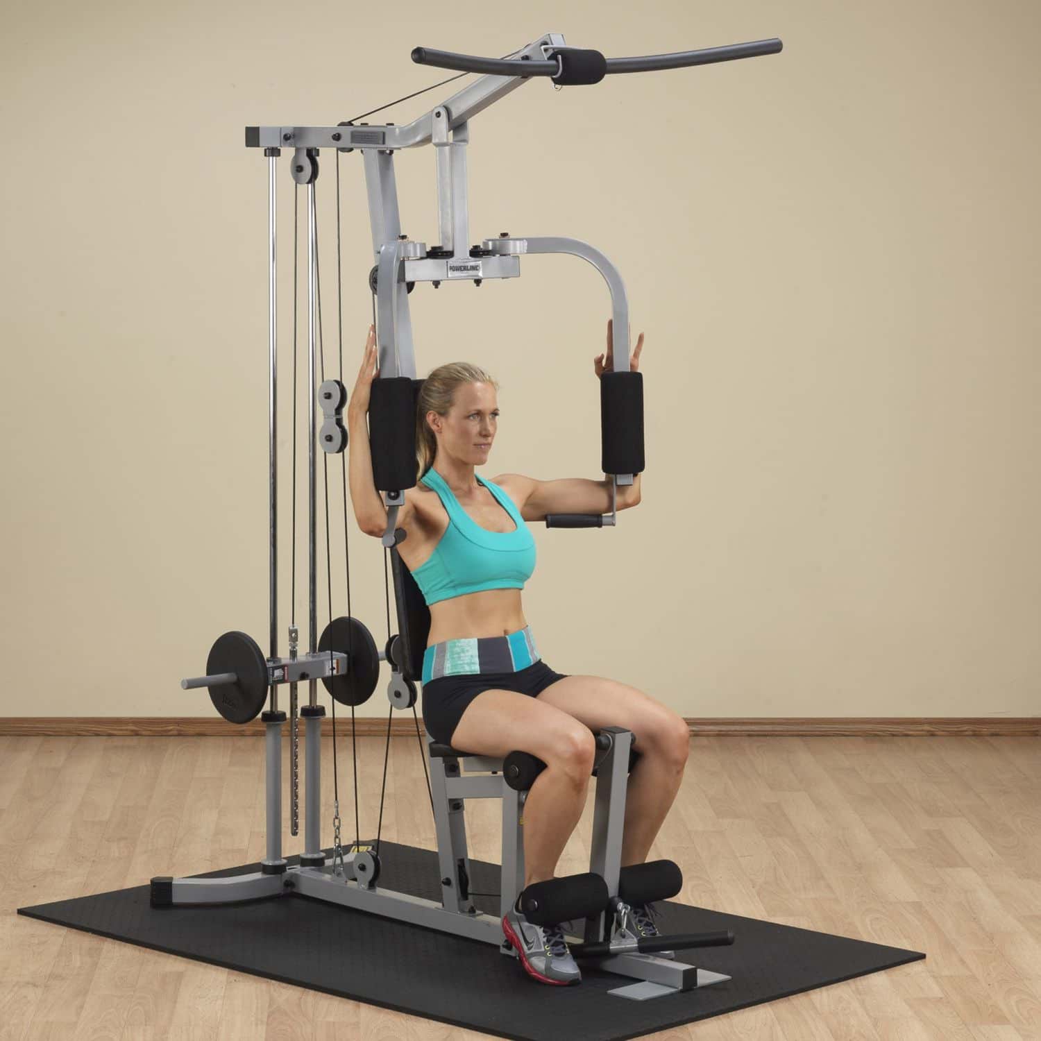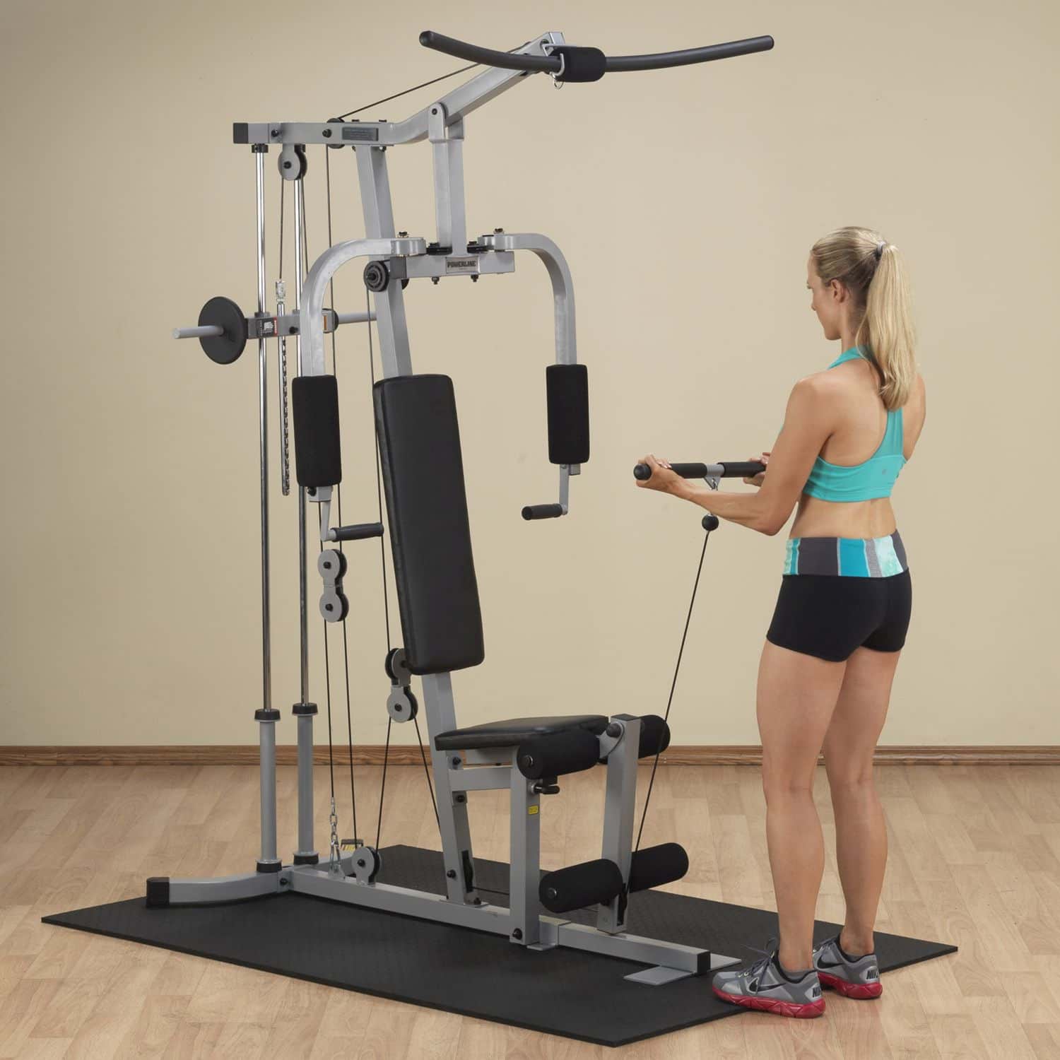 Der Body-Solid Ganzkörpertrainer aus der Powerline-Serie ist das perfekte Einsteigermodell für Ihr Home-Gym. Das PHG-1000X verfügt über zwei Kabelzug-Vorrichtungen (unten und oben am Gerät), einem Bankdrückbügel mit integrierten Butterflyarmen sowie einer Beinstation. Dabei ist ein unmittelbarer Wechsel vom Bankdrücken zum Butterfly möglich, da eine Verstellung des Gerätes für die verschiedenen Übungen nicht erforderlich ist. Die Kraftstation ist für die Nutzung von Hantelscheiben konzipiert worden, kann jedoch aber auch optional mit einem 72kg-Steckgewichtsblock ausgestattet werden, sodass der Trainingswiderstand schnell und einfach eingestellt werden kann. Zusätzlich zu dem Gewichtspaket können zusätzlich auch Hantelscheiben zur Erhöhung des Trainingswiderstandes verwendet werden. Kugelgelagerte Umlenkrollen, ein nylonummanteltes Stahlseil aus dem Flugzeugbau sowie Gewichtsplatten mit Nylonbuchsen garantieren dabei einen friktionsfreien Bewegungsablauf.