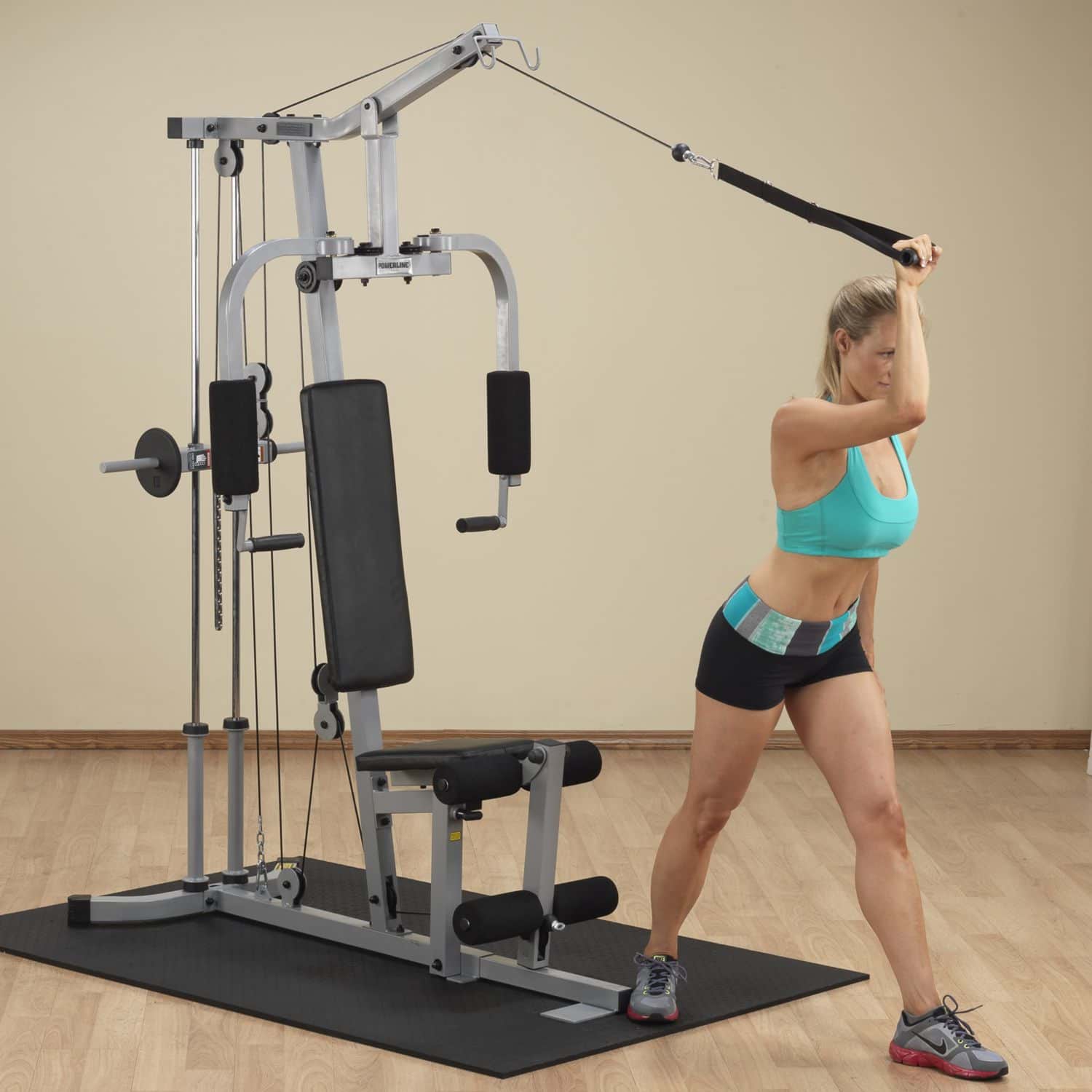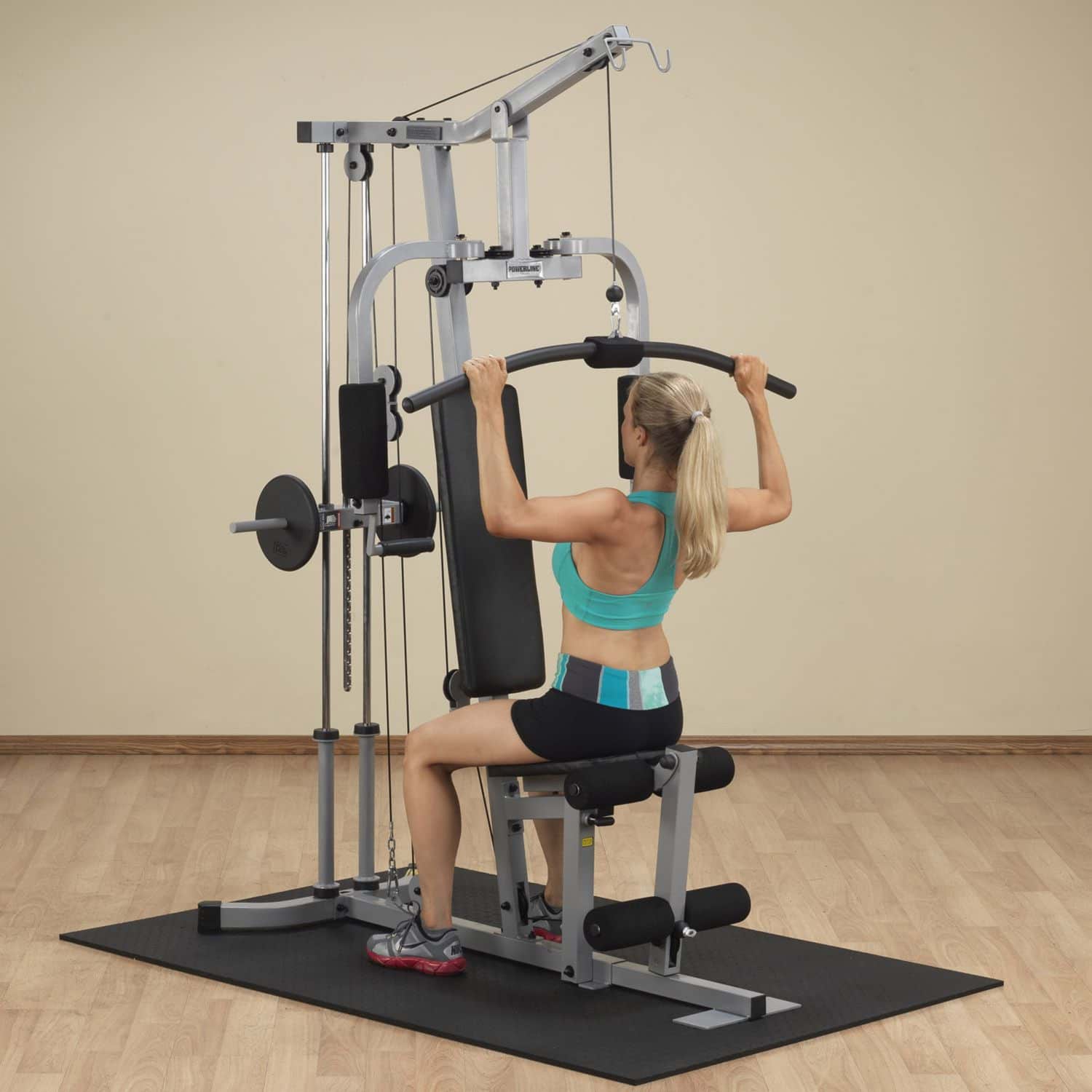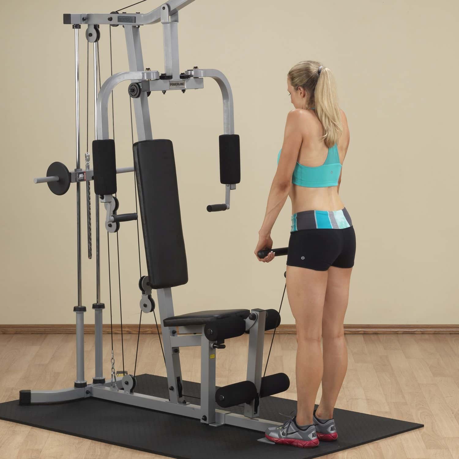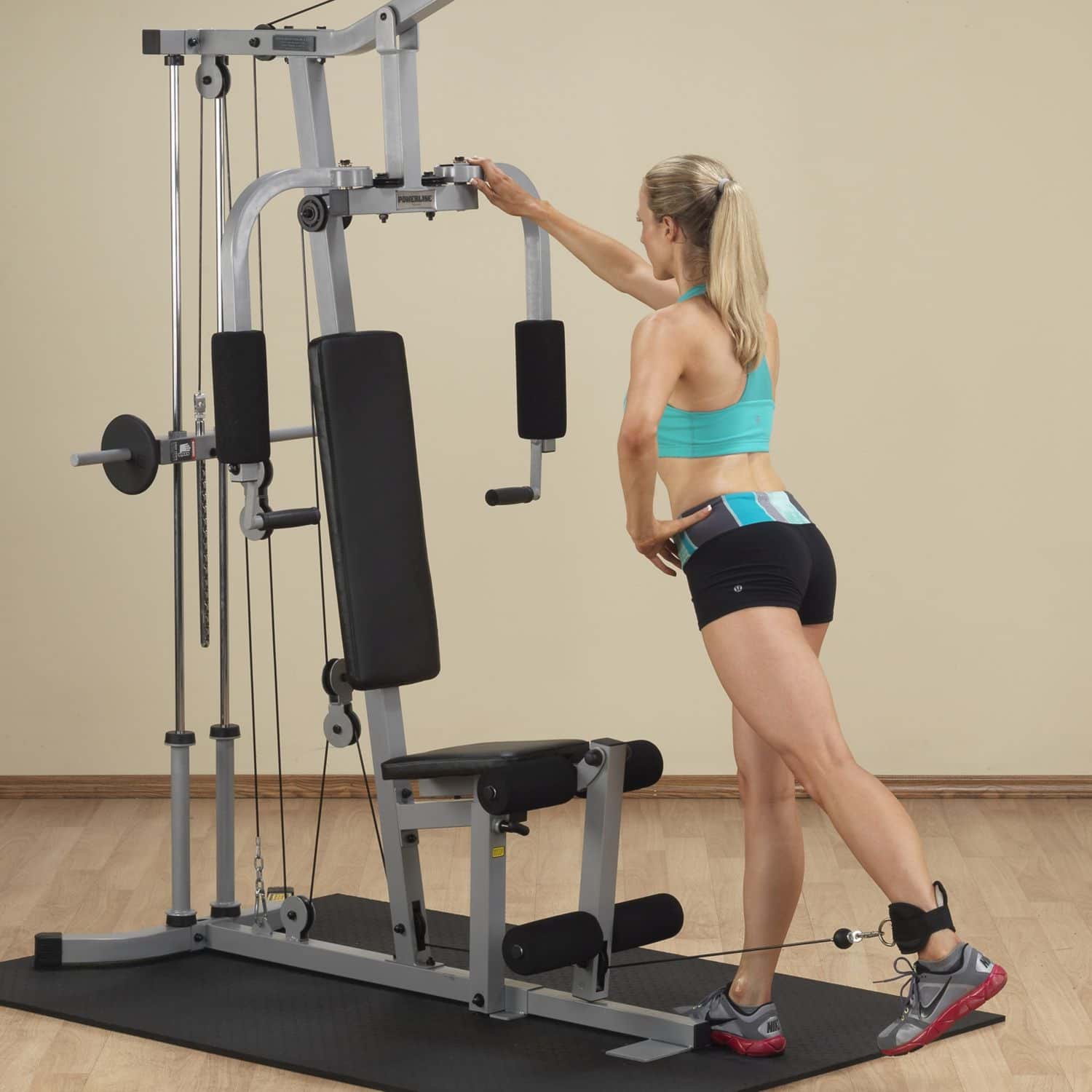 Der Body-Solid Ganzkörpertrainer aus der Powerline-Serie ist das perfekte Einsteigermodell für Ihr Home-Gym. Das PHG-1000X verfügt über zwei Kabelzug-Vorrichtungen (unten und oben am Gerät), einem Bankdrückbügel mit integrierten Butterflyarmen sowie einer Beinstation. Dabei ist ein unmittelbarer Wechsel vom Bankdrücken zum Butterfly möglich, da eine Verstellung des Gerätes für die verschiedenen Übungen nicht erforderlich ist. Die Kraftstation ist für die Nutzung von Hantelscheiben konzipiert worden, kann jedoch aber auch optional mit einem 72kg-Steckgewichtsblock ausgestattet werden, sodass der Trainingswiderstand schnell und einfach eingestellt werden kann. Zusätzlich zu dem Gewichtspaket können zusätzlich auch Hantelscheiben zur Erhöhung des Trainingswiderstandes verwendet werden. Kugelgelagerte Umlenkrollen, ein nylonummanteltes Stahlseil aus dem Flugzeugbau sowie Gewichtsplatten mit Nylonbuchsen garantieren dabei einen friktionsfreien Bewegungsablauf.