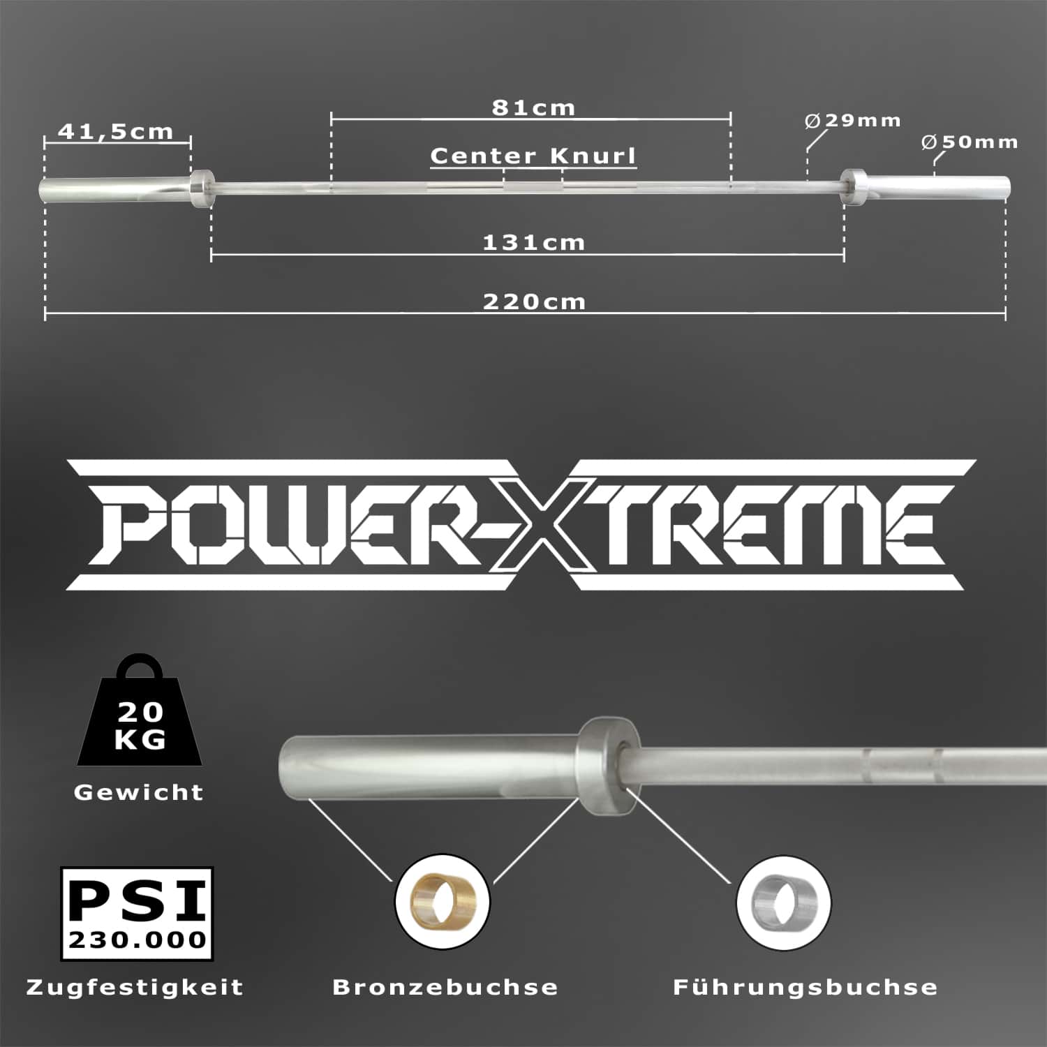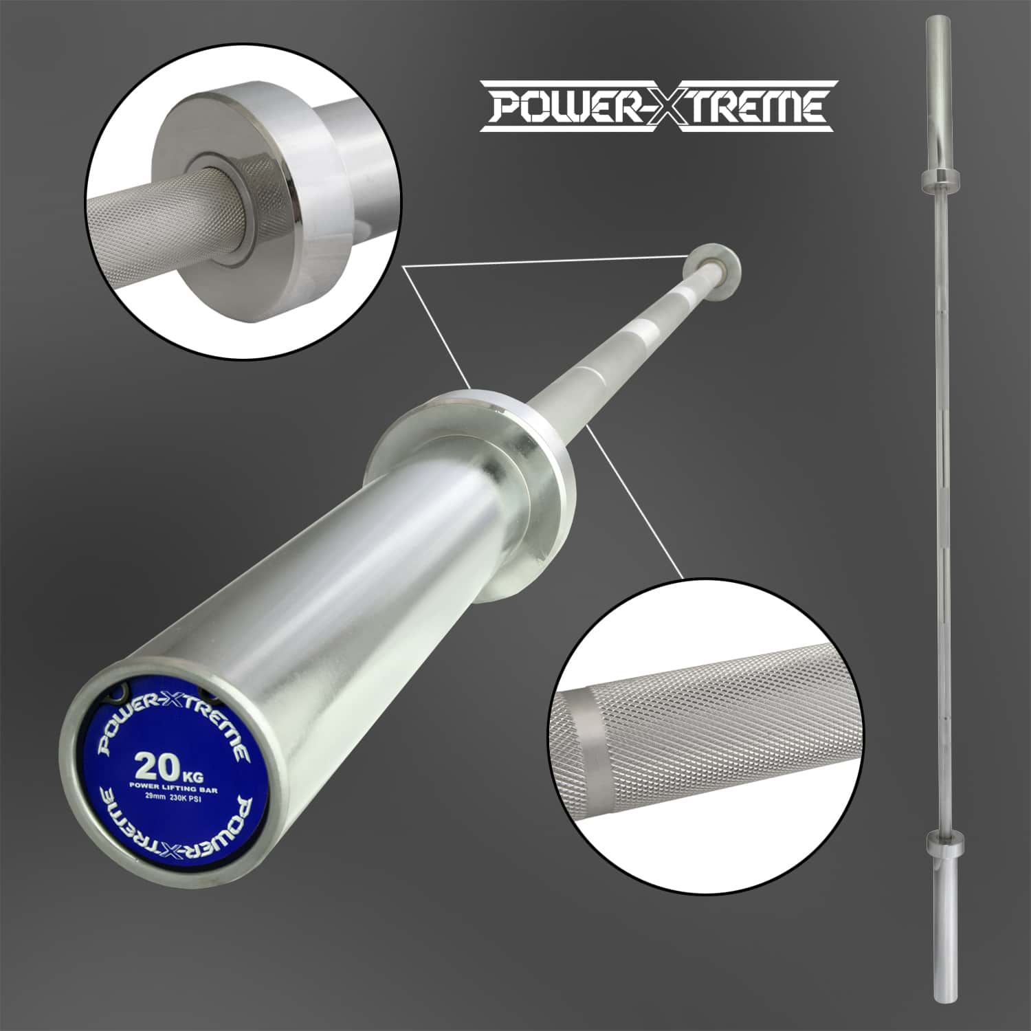Die POWER-XTREME Powerlifting Bar ist eine hochwertige Langhantelstange, die speziell für das Powerlifting-Training konzipiert wurde und somit allen Anforderungen der International Powerlifting Federation (IPF) entspricht. Mit einer beeindruckenden Zugfestigkeit von 230.000 PSI (230KSI), einem Griffdurchmesser von 29mm und einer extra präzisen Rändelung