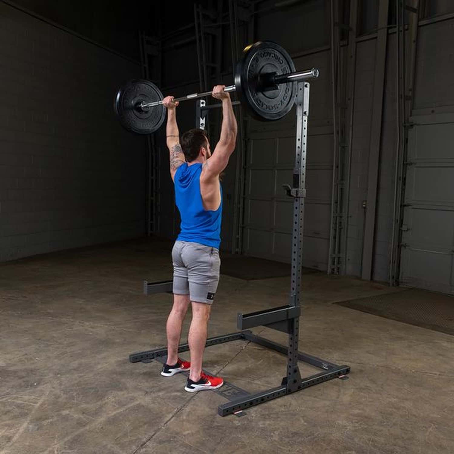 Das Body-Solid Half-Rack aus der Powerline-Serie besticht durch seine vielseitigen Einsatzmöglichkeiten und ist somit das perfekte Einsteigermodell für jedes Heimstudio. In der Basisvariante lassen sich neben Kniebeugen, Bent-Over Row und Deadlifts auch Shoulder, Clean und Military Press Übungen auf eine einfache und effektive Weise durchführen. Dabei sind die Sicherheits- und Hantelablagen mehrfach verstellbar, sodass ein sicherer Trainingsablauf während jeder Übung gewährleistet ist. Durch optionale Anbauten lässt sich das Half-Rack zudem zu einem Power-Rack mit oder ohne Latzug- & Ruderfunktion erweitern.