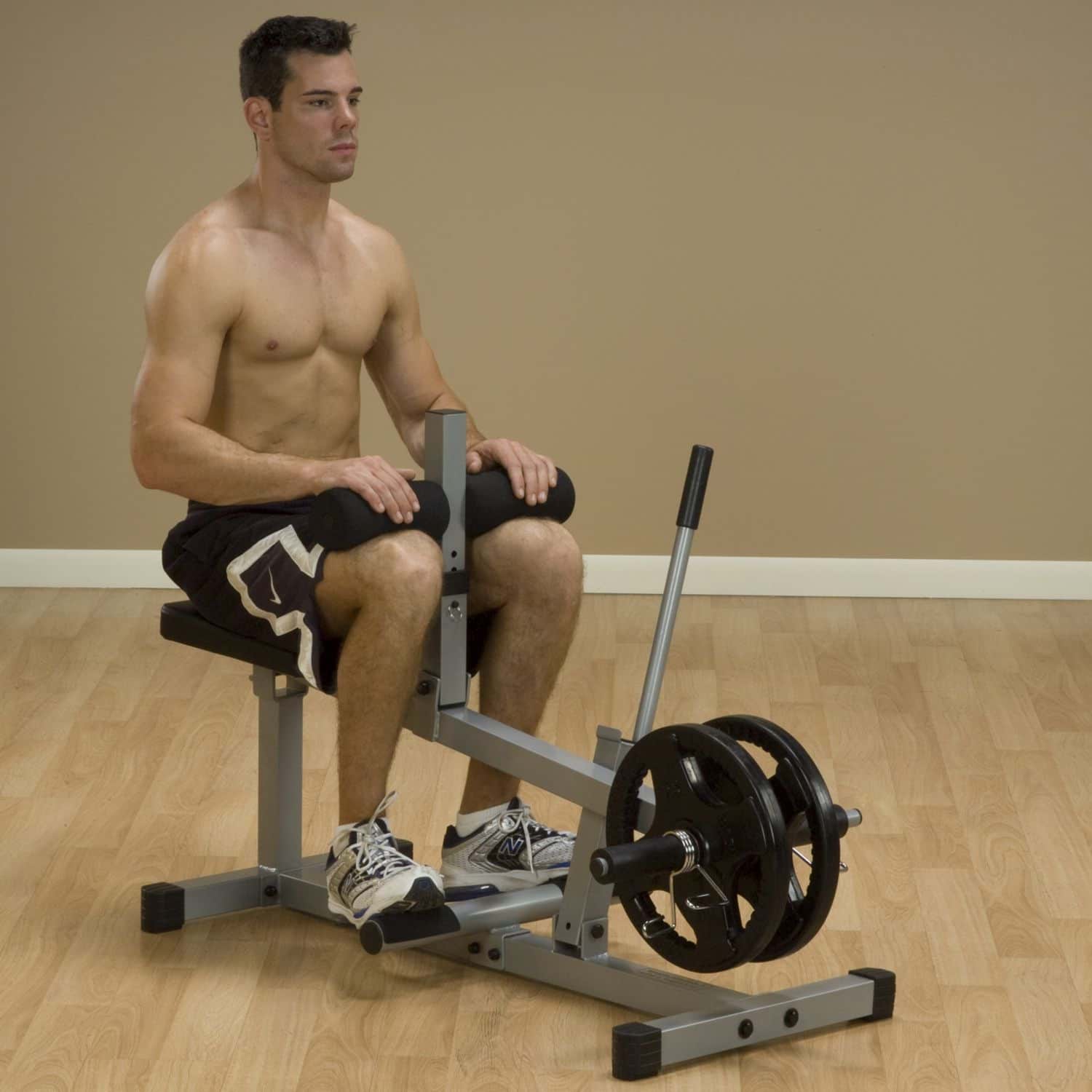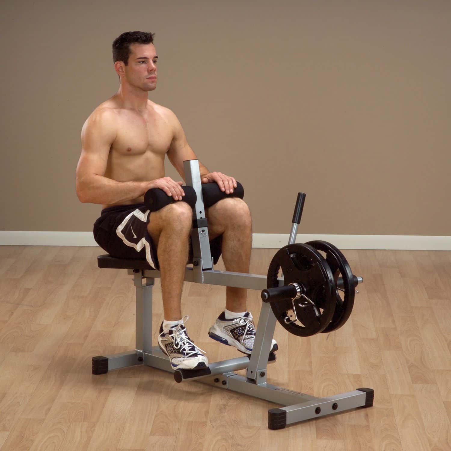 Der Wadentrainer aus der Powerline-Serie ist ideal für das Wadentraining zu Hause geeignet. Das Übersetzungsverhältnis von Trainingswiderstand zum aufgelegten Gewicht beträgt 3:1. Dank der 5-fach per Pop-Pin höhenverstellbaren Kniepolsterung wird eine einfache und schnelle Anpassung ermöglicht. Während des Trainings sorgt die runde Fußablage für einen maximalen Bewegungsradius und somit für mehr Effizienz. Die 25,4mm-Scheibenaufnahmen lassen sich dabei optional auf 30mm- oder 50mm erweitern.