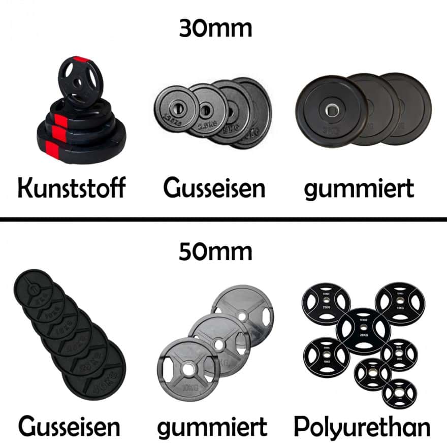 Abgebildete Hantelscheiben, Adapter und Federverschlüsse sind nicht im Lieferumfang enthalten, diese können aber optional erworben werden.