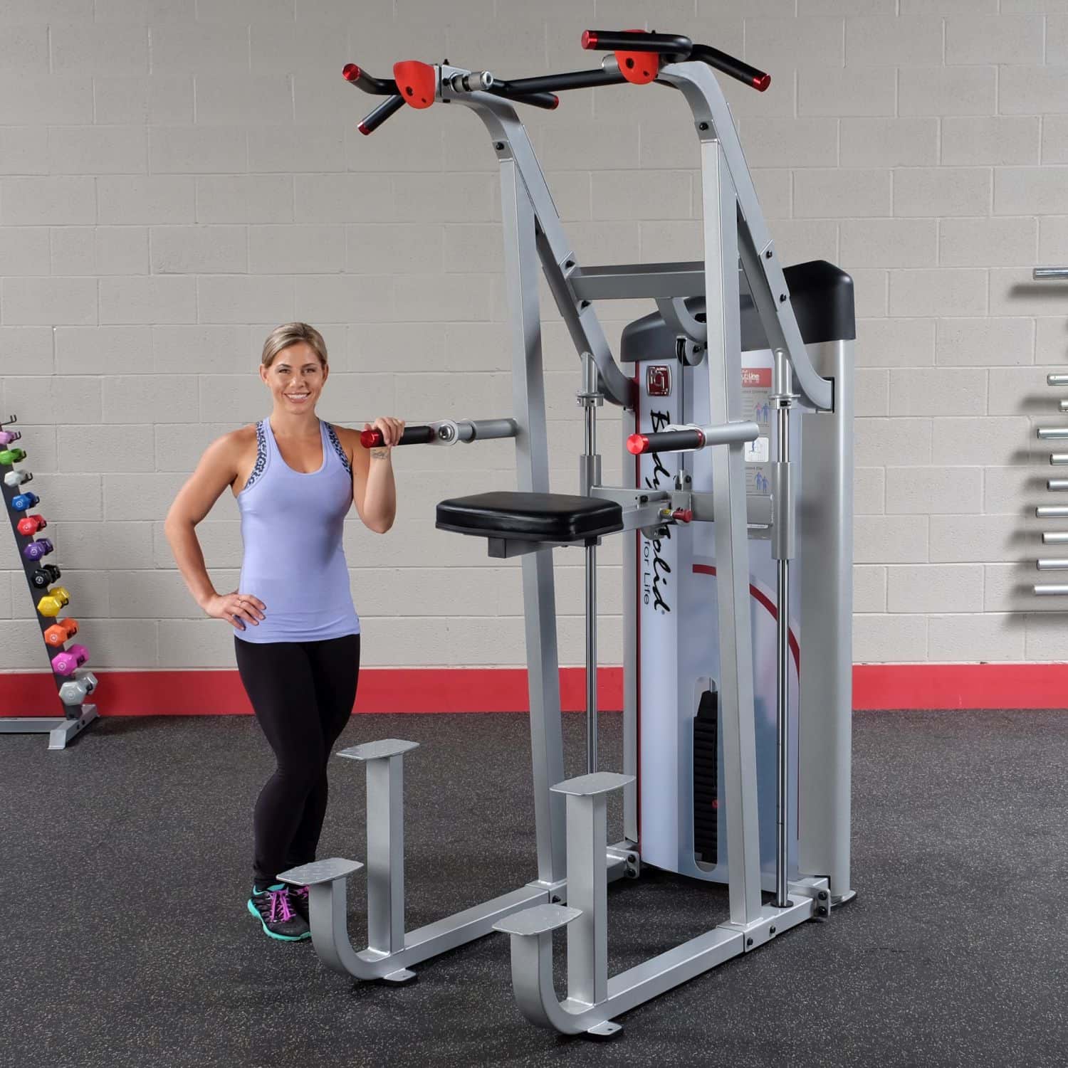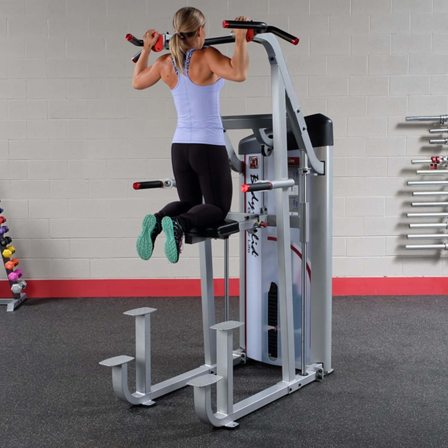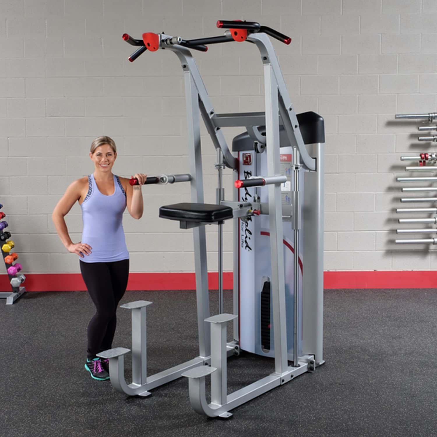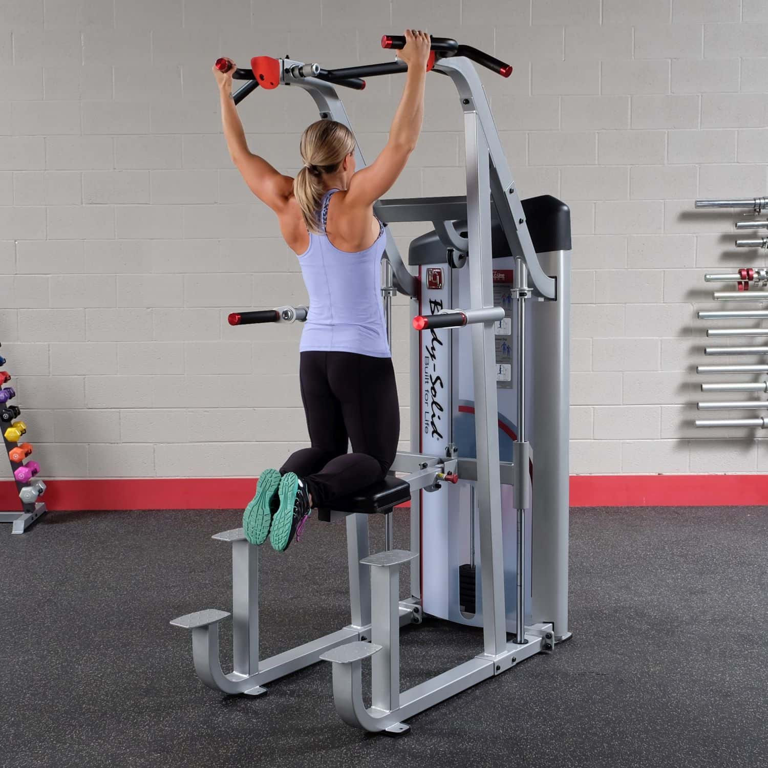 Mit der Body-Solid Klimmzug- / Dipmaschine aus der Pro Club S2 Serie können Sie dank der Gewichtsunterstützung Ihre Dip- und Klimmzugbewegungen leichter und effektiver durchführen. Unabhängig vom aktuellen Fitnesslevel kann das Gerät dadurch perfekt an das Trainingsniveau des Nutzers angepasst werden.