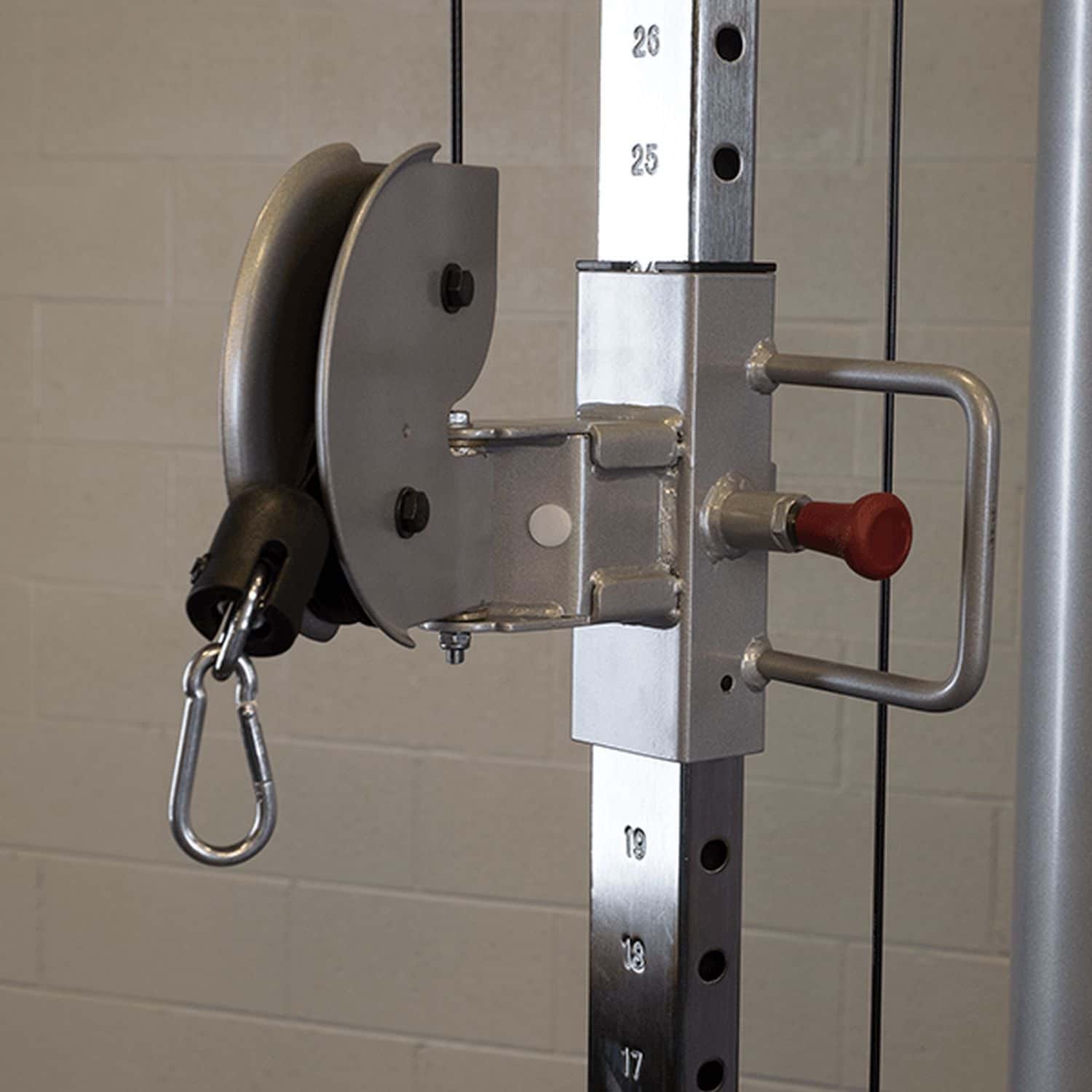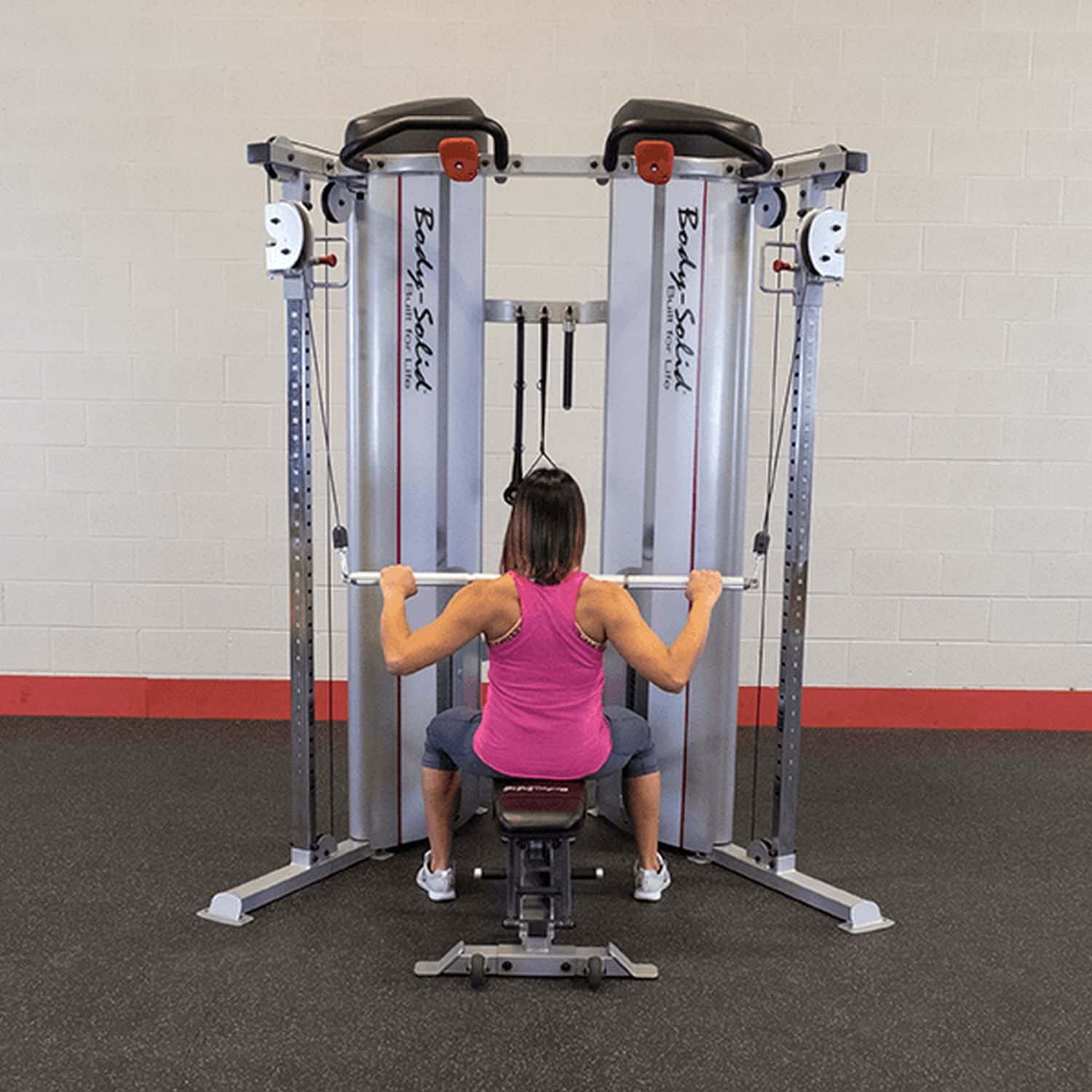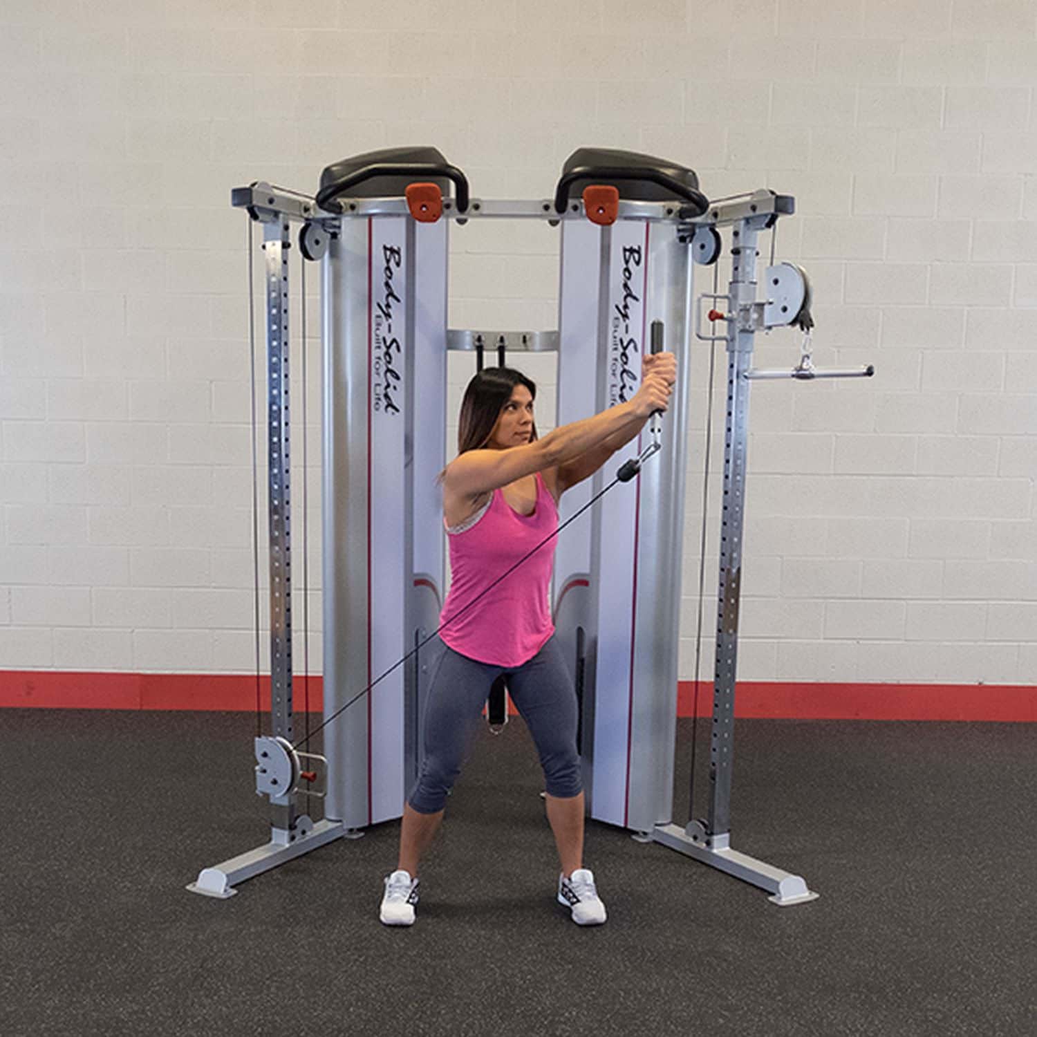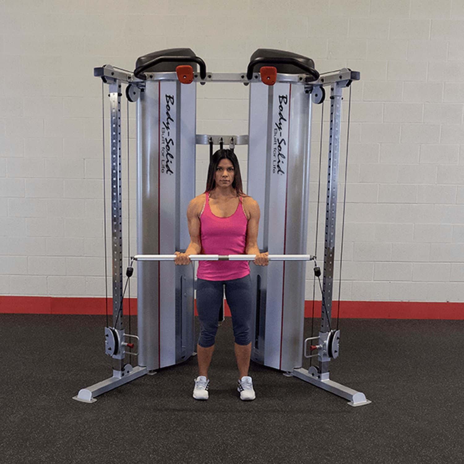 Mit seiner platzsparenden Grundfläche, zwei unabhängigen Steckgewichten, benutzerfreundlicher Ergonomie und Einstellbarkeit sowie präzisionsmontierten Komponenten ist das S2FT Series II Functional Training Center eine hervorragende Ergänzung für jeden Workout-Raum. Der Functional Trainer ist höher als herkömmliche Geräte und bietet dadurch unvergleichliche Bewegungsfreiheit. Ergonomisch gestaltete Einstellmöglichkeiten und austauschbare Zuggriffe bieten eine Vielzahl von Trainingsvariationen. Durch die zwei unabhängigen Steckgewichtssysteme des Functional Trainers können isolaterale Bewegungsabläufe durchgeführt werden, um die jeweiligen Muskelgruppen individuell und effektiv trainieren zu können. Mehrere Handgriffe - einschließlich des exklusiven Klettergriffs von Body-Solid - helfen dem Benutzer nicht nur beim Aufbau der Handgriffstärke, sondern auch beim Aufbau der Oberkörpermuskulatur. Die gepolsterte Athletic-Bar ermöglicht zudem komplexe Bewegungen, die z.B. Tennis-, Golf- und Baseballschwünge simulieren.