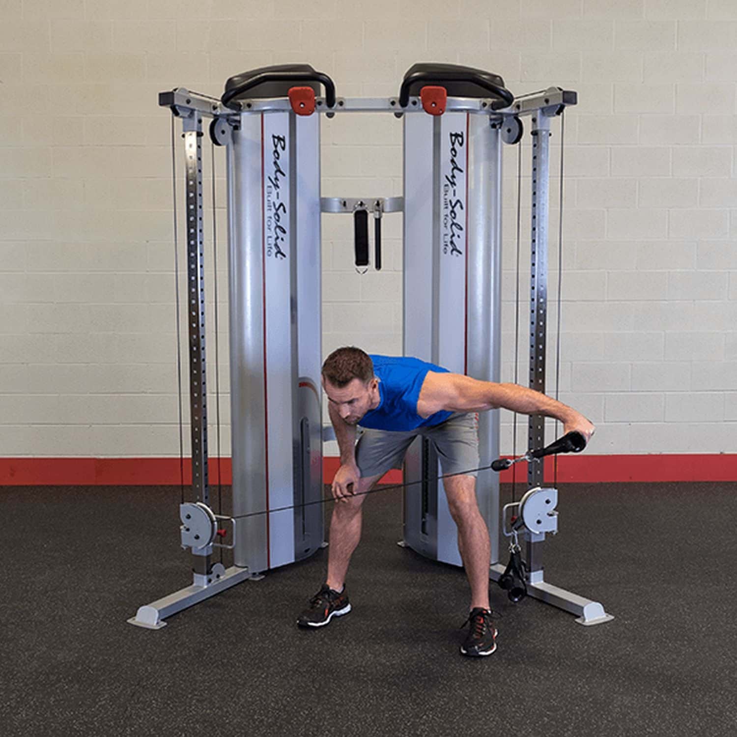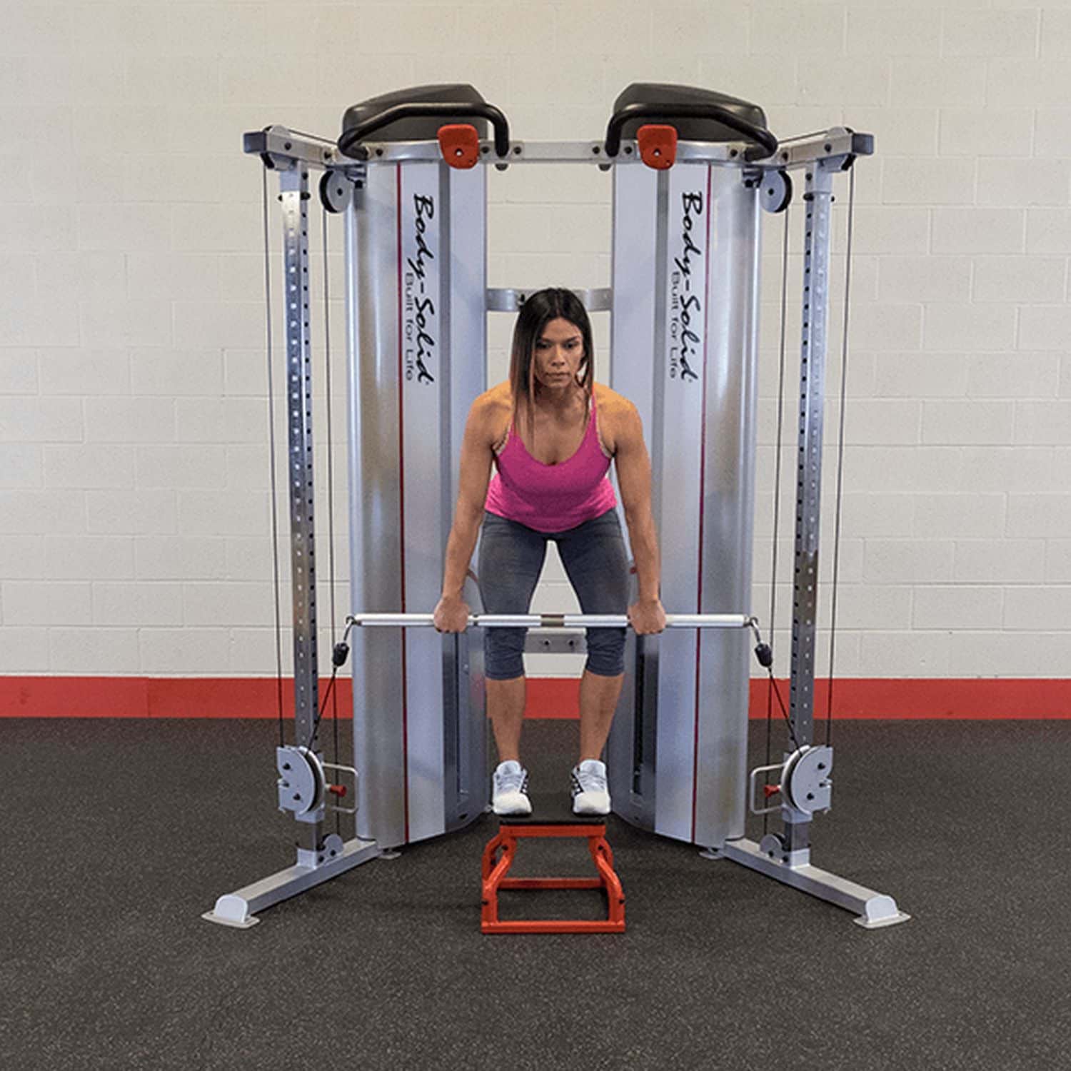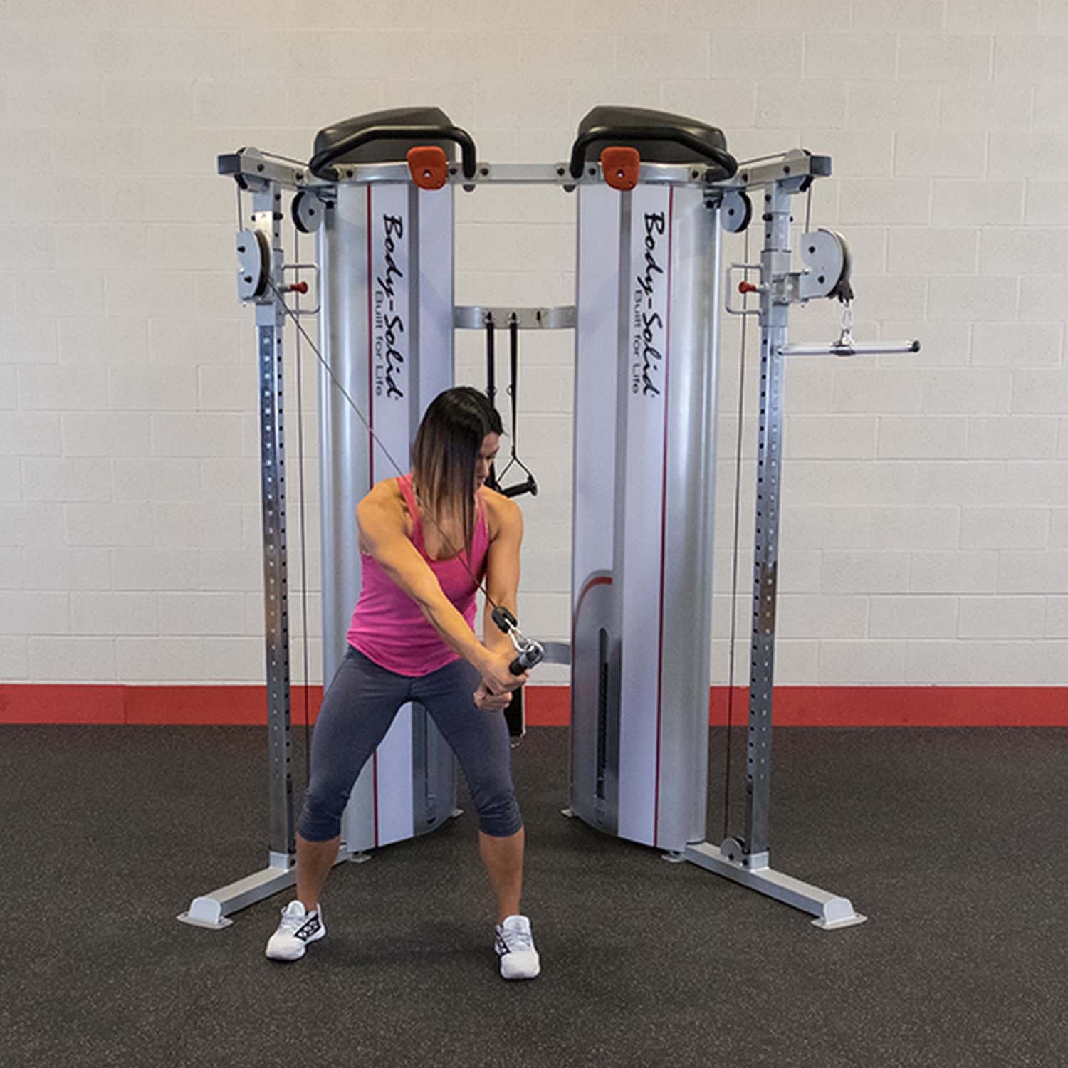 Mit seiner platzsparenden Grundfläche, zwei unabhängigen Steckgewichten, benutzerfreundlicher Ergonomie und Einstellbarkeit sowie präzisionsmontierten Komponenten ist das S2FT Series II Functional Training Center eine hervorragende Ergänzung für jeden Workout-Raum. Der Functional Trainer ist höher als herkömmliche Geräte und bietet dadurch unvergleichliche Bewegungsfreiheit. Ergonomisch gestaltete Einstellmöglichkeiten und austauschbare Zuggriffe bieten eine Vielzahl von Trainingsvariationen. Durch die zwei unabhängigen Steckgewichtssysteme des Functional Trainers können isolaterale Bewegungsabläufe durchgeführt werden, um die jeweiligen Muskelgruppen individuell und effektiv trainieren zu können. Mehrere Handgriffe - einschließlich des exklusiven Klettergriffs von Body-Solid - helfen dem Benutzer nicht nur beim Aufbau der Handgriffstärke, sondern auch beim Aufbau der Oberkörpermuskulatur. Die gepolsterte Athletic-Bar ermöglicht zudem komplexe Bewegungen, die z.B. Tennis-, Golf- und Baseballschwünge simulieren.