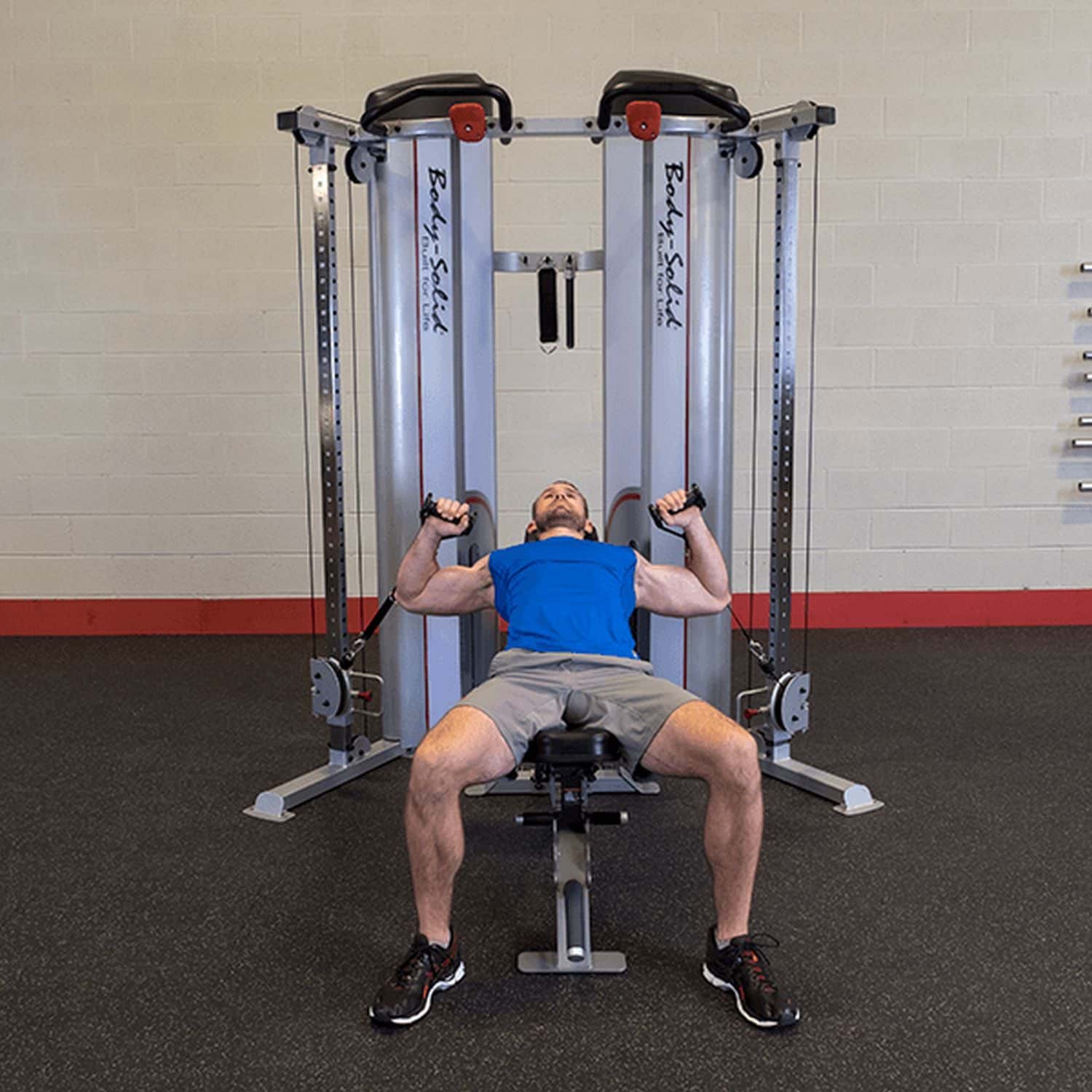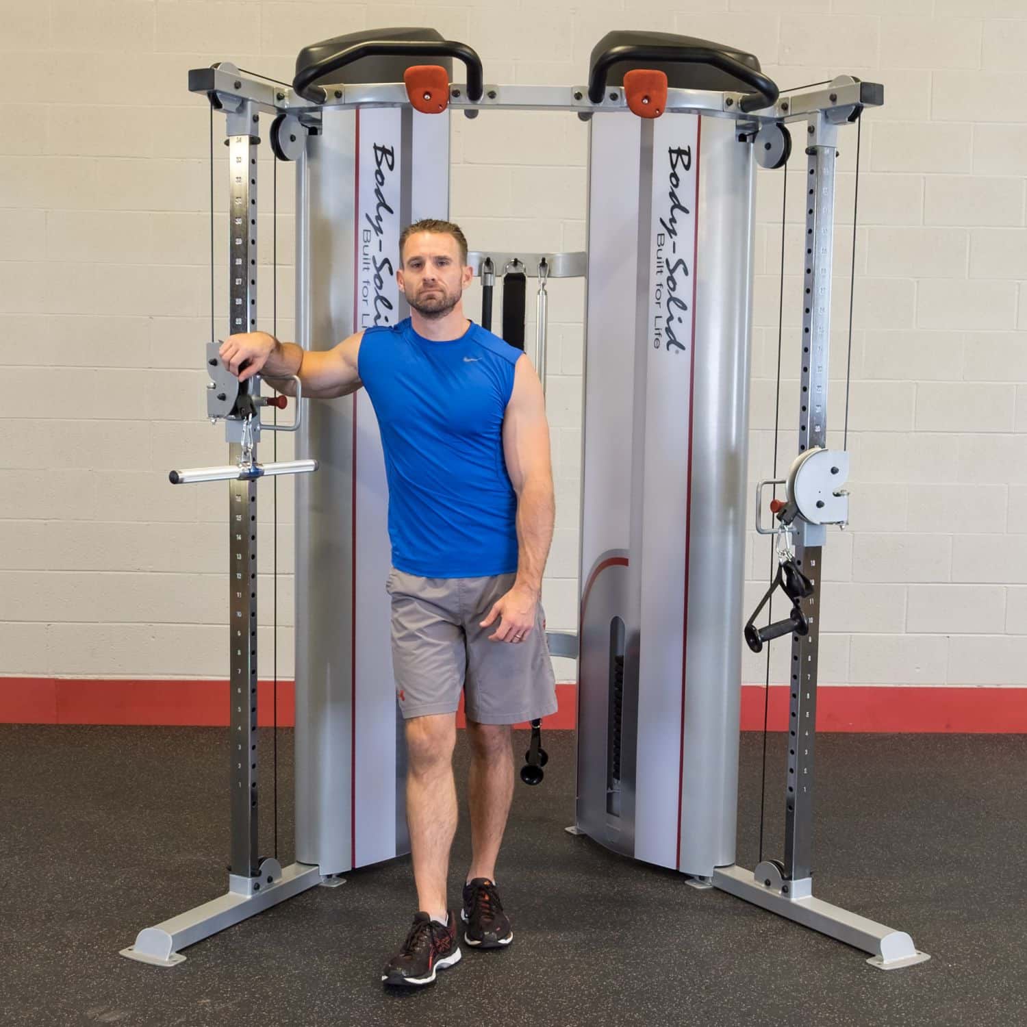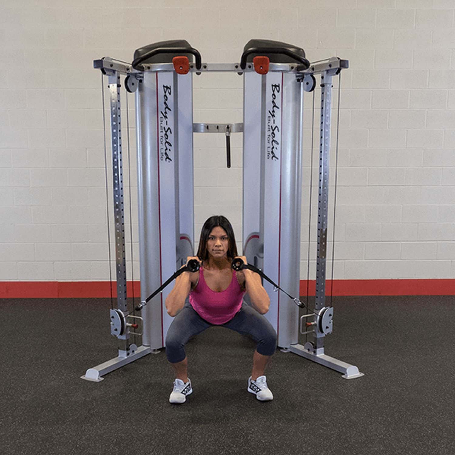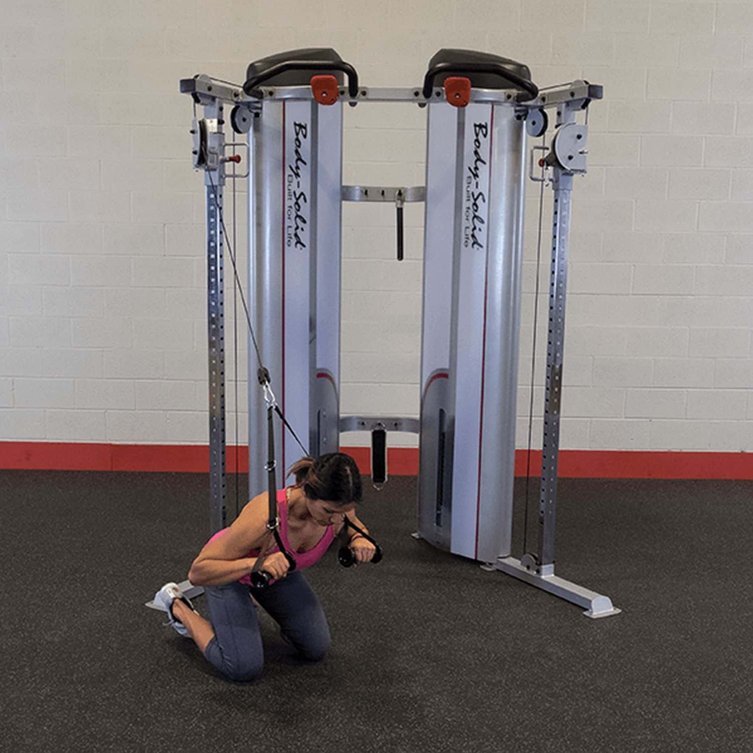 Mit seiner platzsparenden Grundfläche, zwei unabhängigen Steckgewichten, benutzerfreundlicher Ergonomie und Einstellbarkeit sowie präzisionsmontierten Komponenten ist das S2FT Series II Functional Training Center eine hervorragende Ergänzung für jeden Workout-Raum. Der Functional Trainer ist höher als herkömmliche Geräte und bietet dadurch unvergleichliche Bewegungsfreiheit. Ergonomisch gestaltete Einstellmöglichkeiten und austauschbare Zuggriffe bieten eine Vielzahl von Trainingsvariationen. Durch die zwei unabhängigen Steckgewichtssysteme des Functional Trainers können isolaterale Bewegungsabläufe durchgeführt werden, um die jeweiligen Muskelgruppen individuell und effektiv trainieren zu können. Mehrere Handgriffe - einschließlich des exklusiven Klettergriffs von Body-Solid - helfen dem Benutzer nicht nur beim Aufbau der Handgriffstärke, sondern auch beim Aufbau der Oberkörpermuskulatur. Die gepolsterte Athletic-Bar ermöglicht zudem komplexe Bewegungen, die z.B. Tennis-, Golf- und Baseballschwünge simulieren.