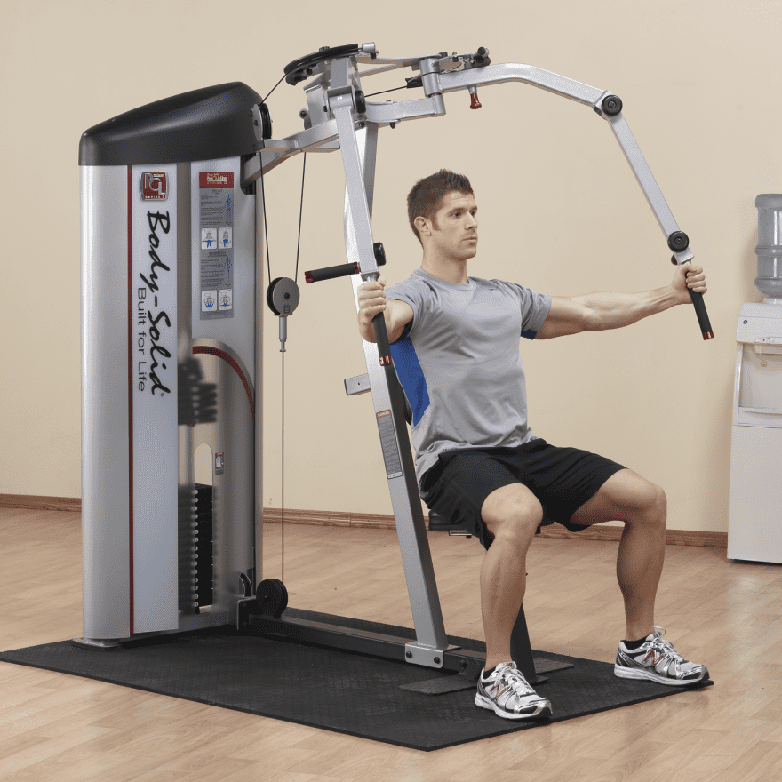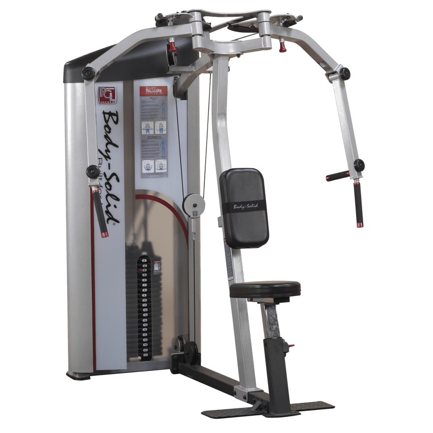 Das Butterfly und Reverse Butterfly von Body-Solid punktet durch seine Funktionalität und Schlichtheit. Hinsichtlich des 15-fach verstellbaren Gewichtsblocks kann das Gerät ideal zum Aufbau der Rückenmuskulatur eingesetzt werden. Dank der robusten Stahlrahmenkonstruktion sowie kugelgelagerten Rollen und ummanteltem Stahlseil ist ein reibungsloser und effizienter Trainingsablauf gewährleistet.