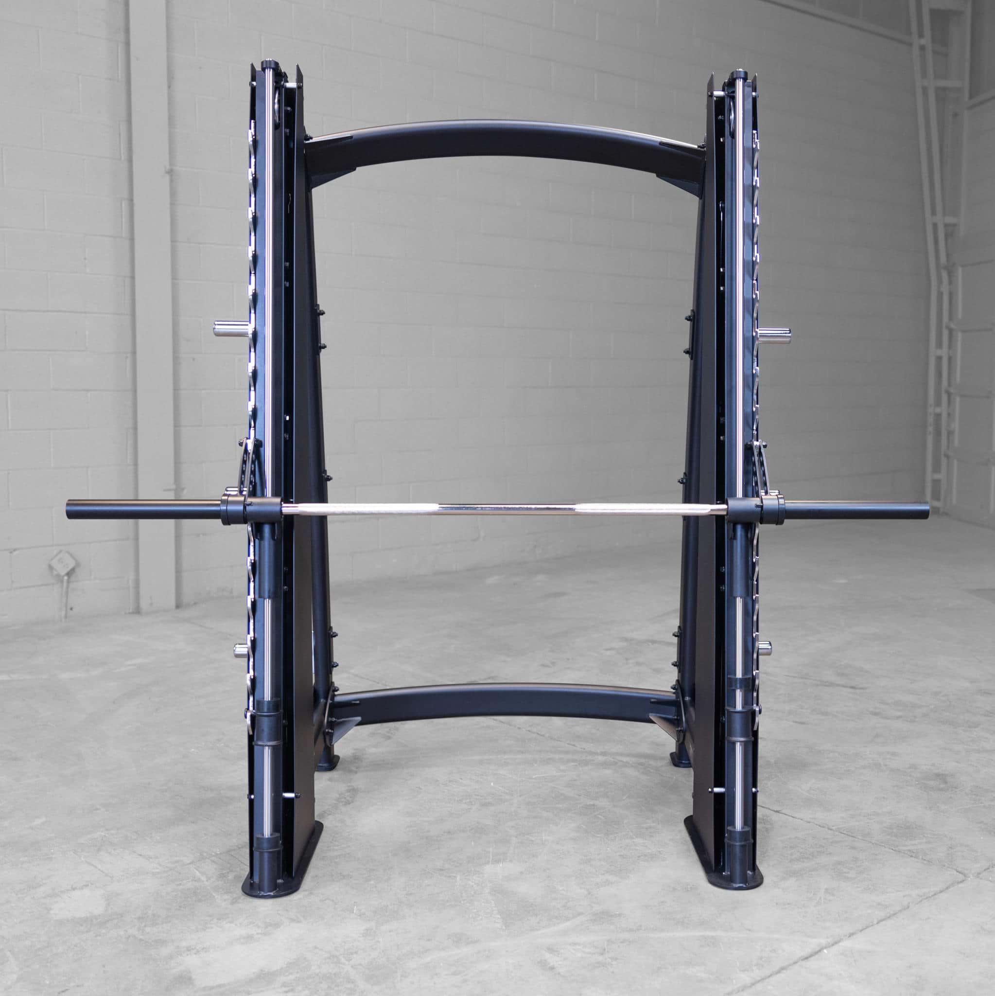 Dank des integrierten Gegengewichts wird das Gewicht der geführten Langhantelstange auf nur 6 lbs (2,7 kg) reduziert. Das ermöglicht es jedem Nutzer, mit einem angemessenen Startgewicht zu beginnen und dieses sicher bis zu beeindruckenden 450 kg zu steigern. Die um 12° nach hinten geneigte Konstruktion sorgt für eine biomechanisch korrekte Ausführung bei Bankdrücken, Kniebeugen, Ausfallschritten, Curls, Schulterdrücken und vielen weiteren Übungen – für ein effektives und gelenkschonendes Training.