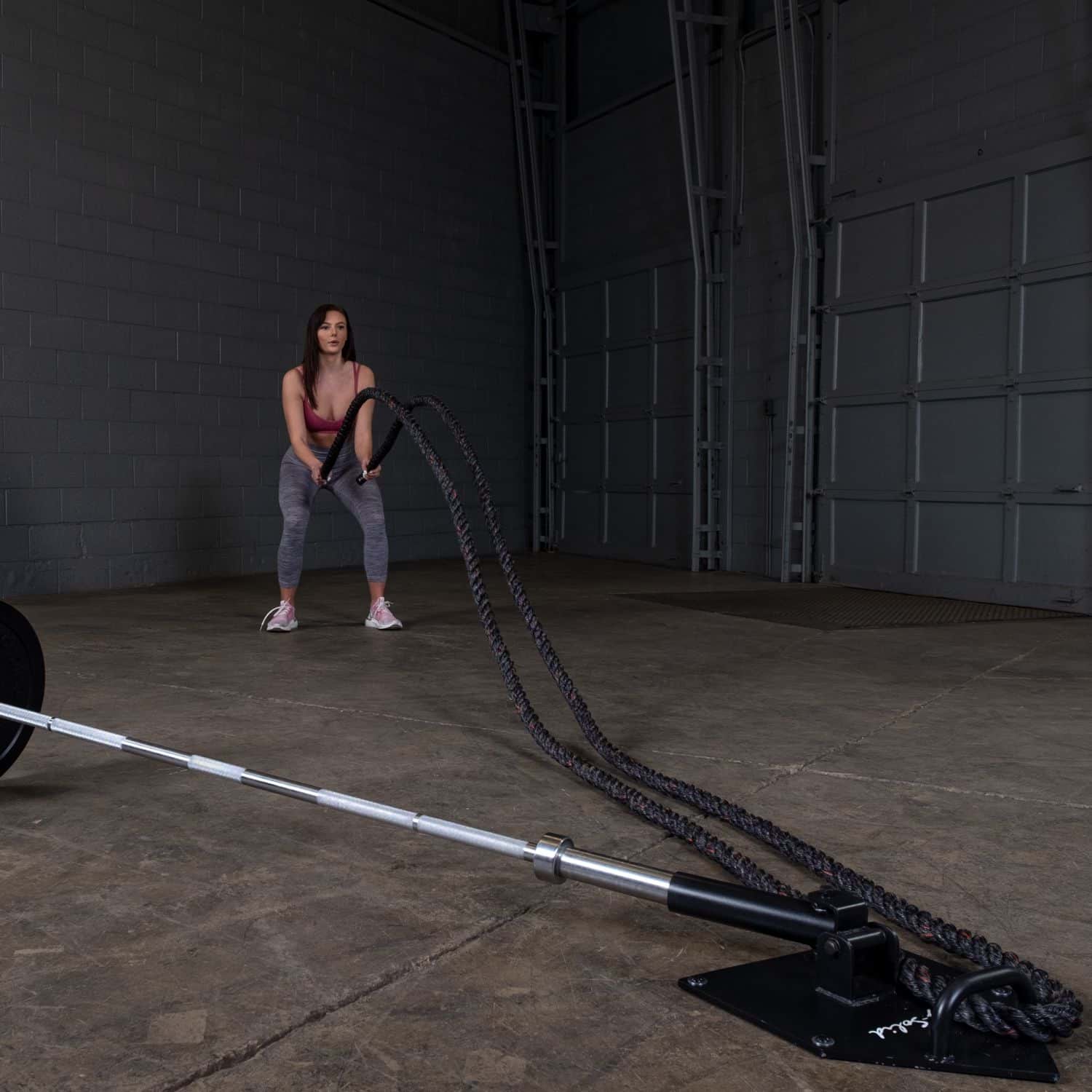 Die vielseitige Body-Solid TBR-50 T-Bar Row / Landmine Base kann für verschiedene Landmine-basierte Workouts wie Pressen, Rudern, Squats, Deadlifts, Bauchrollen u.v.m. verwendet werden. Die Plattform verfügt über eine Öse für Battle-Ropes sowie ein um 360° bewegliches Drehgelenk, das mit allen 50mm-Hantelstangen kompatibel ist. Das spezielle Design ermöglicht es, die Plattform frei im Raum oder in einer Ecke zu nutzen. Dabei kann die Landmine noch zusätzlich mit dem Boden verschraubt werden, um so ein extremes Training mit sehr hohen Gewichten zu ermöglichen.